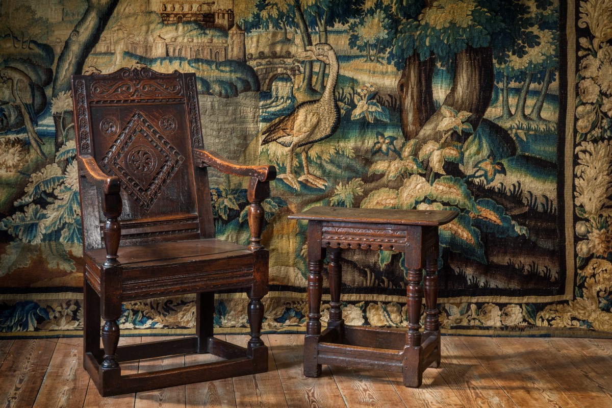 A Charles I Oak Armchair