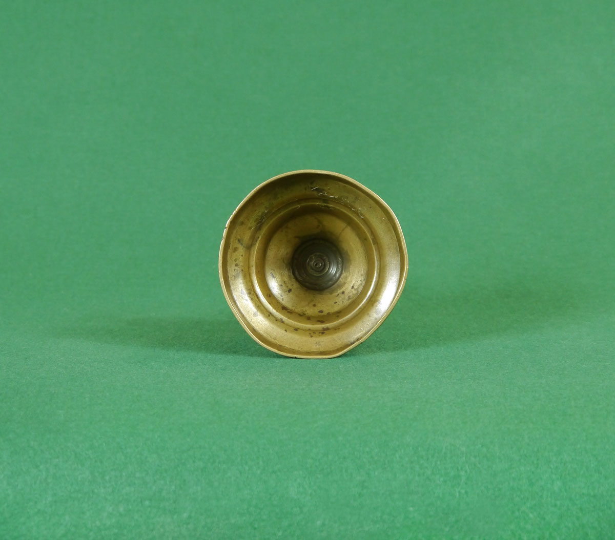 Known as “knop sticks”, due to the discoid decoration on the shafts, these rare and unusual candleholders have either one, two, three, four or five knops, the hardest to find being the five knop, and also the one knop. They are always cast in two pieces, the base and the drip pan cast in a single piece, and the shaft and socket inserted and peened over inside the base. The candlestick is then finished on a very primitive treadle lathe.