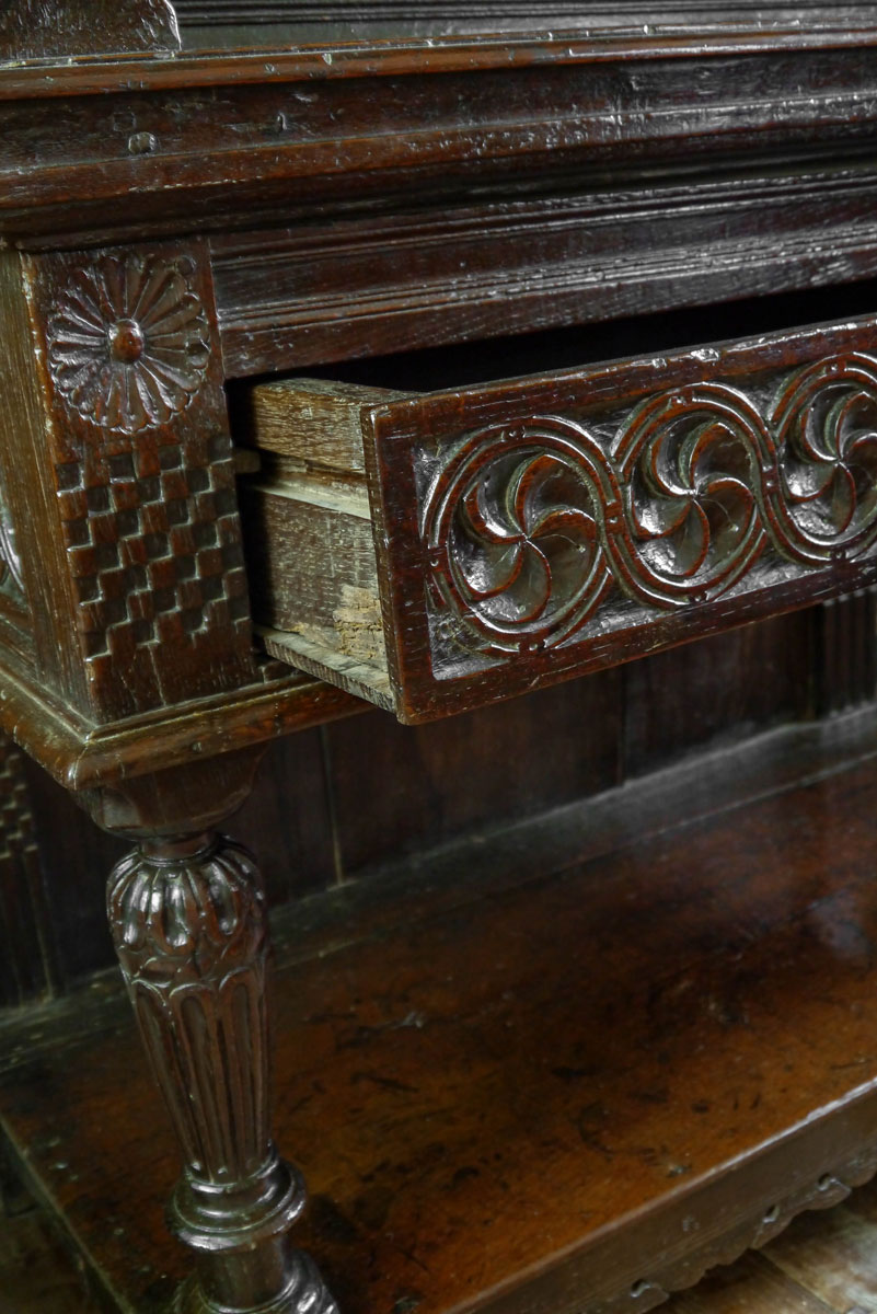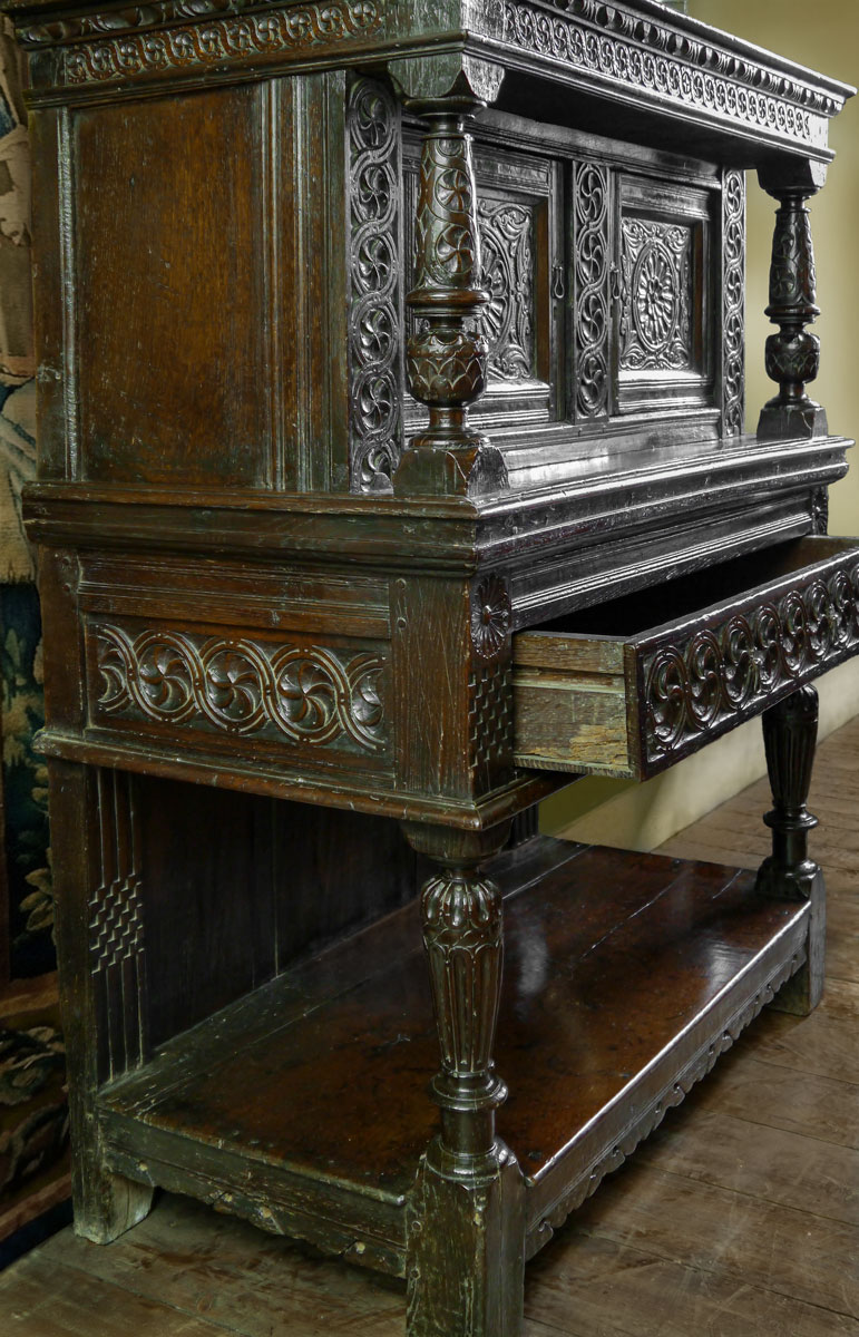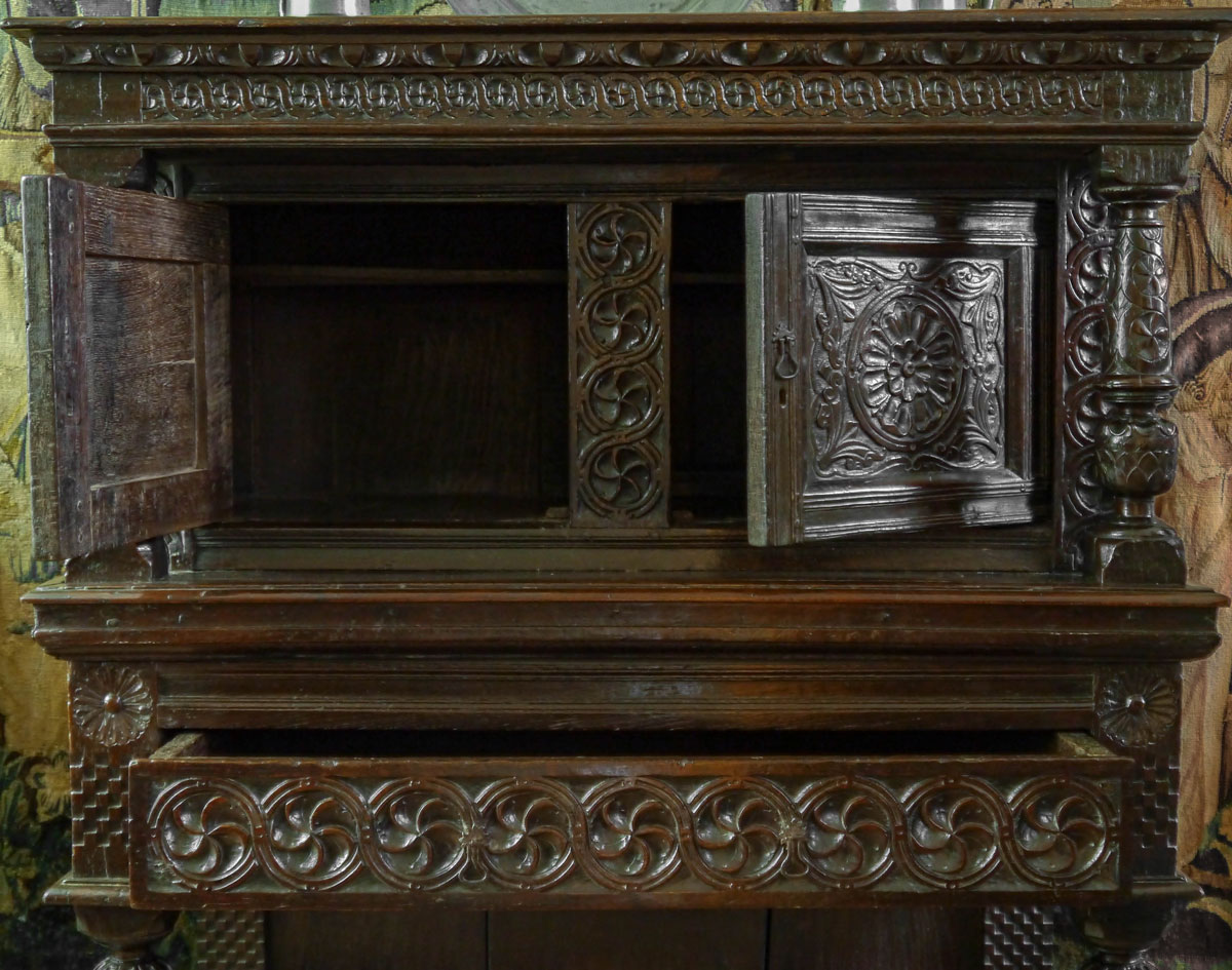 An Extremely Fine and Rare Elizabethan Oak Cupboard on Stand