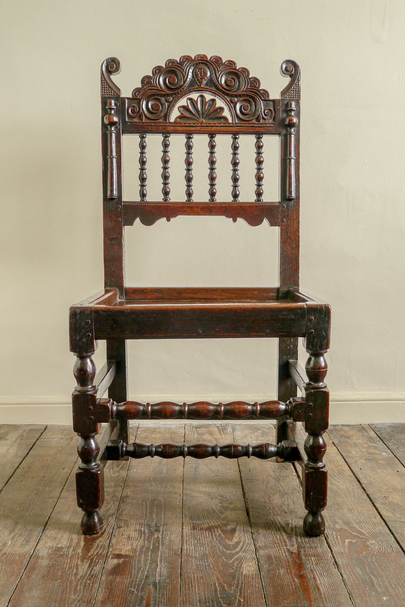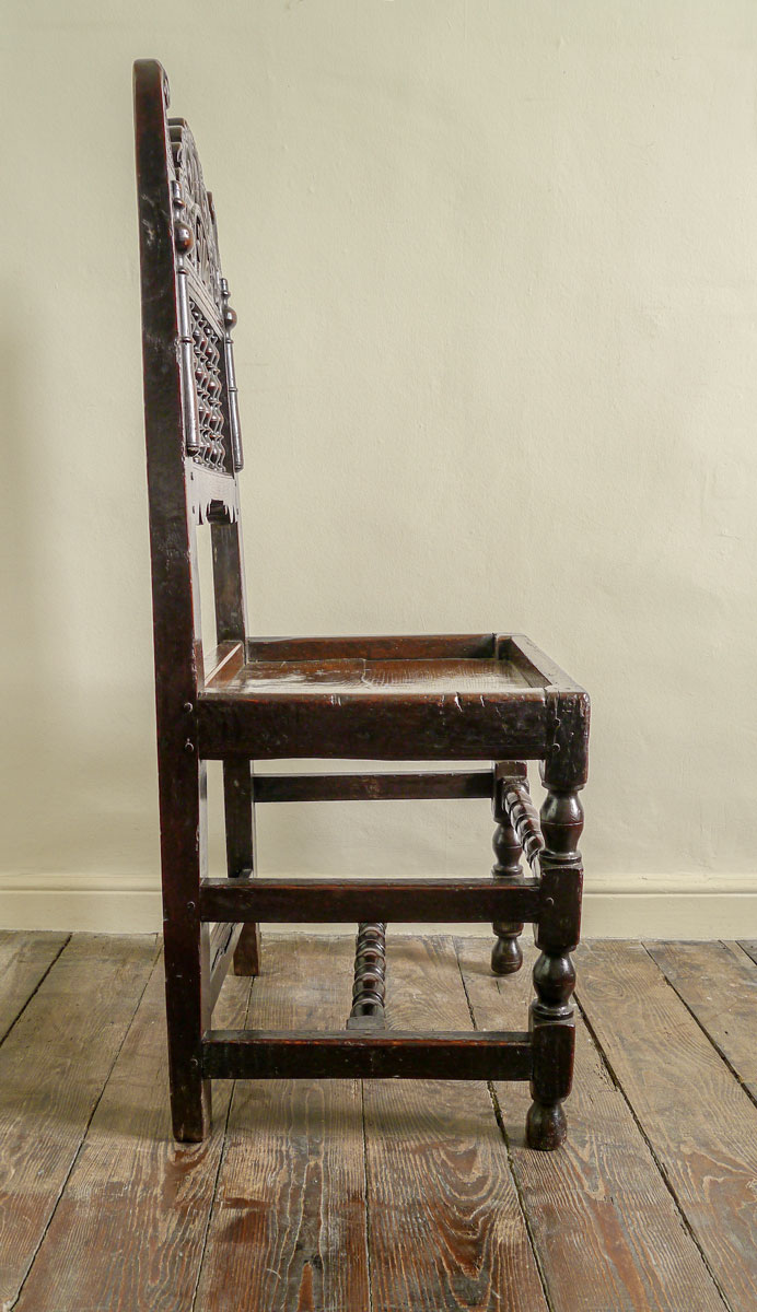 A Fine and Rare Charles II Oak Back Stool, or Single Chair