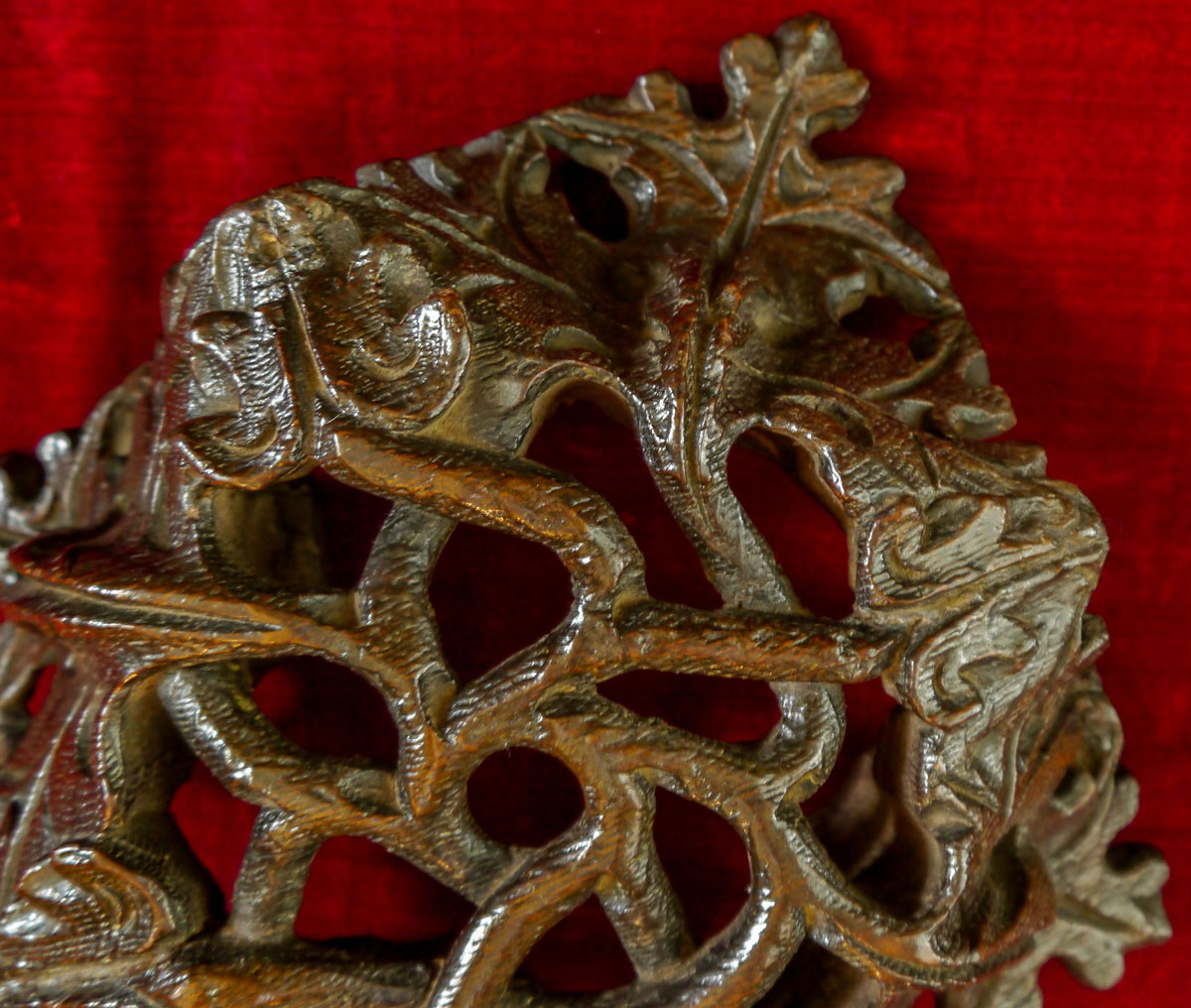 Beautifully carved, with open tracery depicting scrolling vines, flower heads and stylised oak leaves.