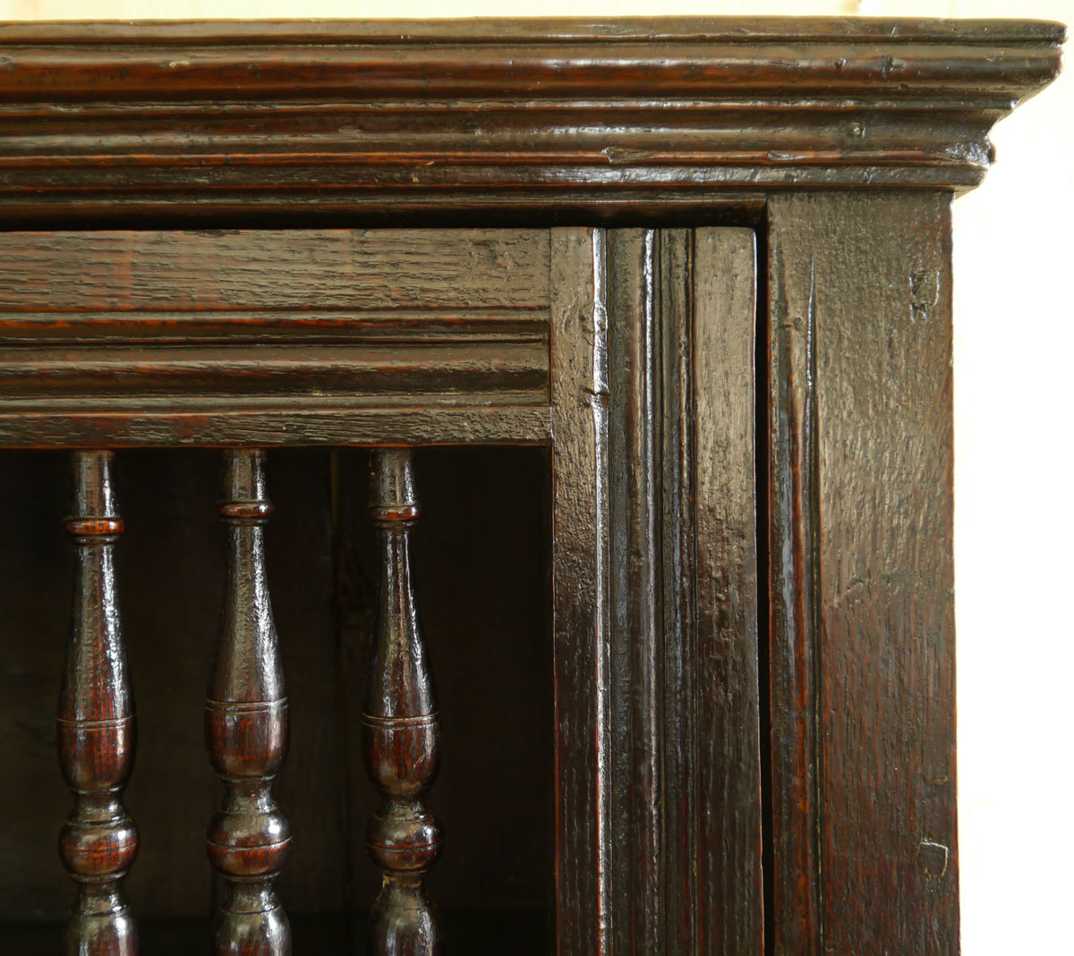 This rare little cupboard has a superb rich patina and surface, especially over the front of the turned spindles.