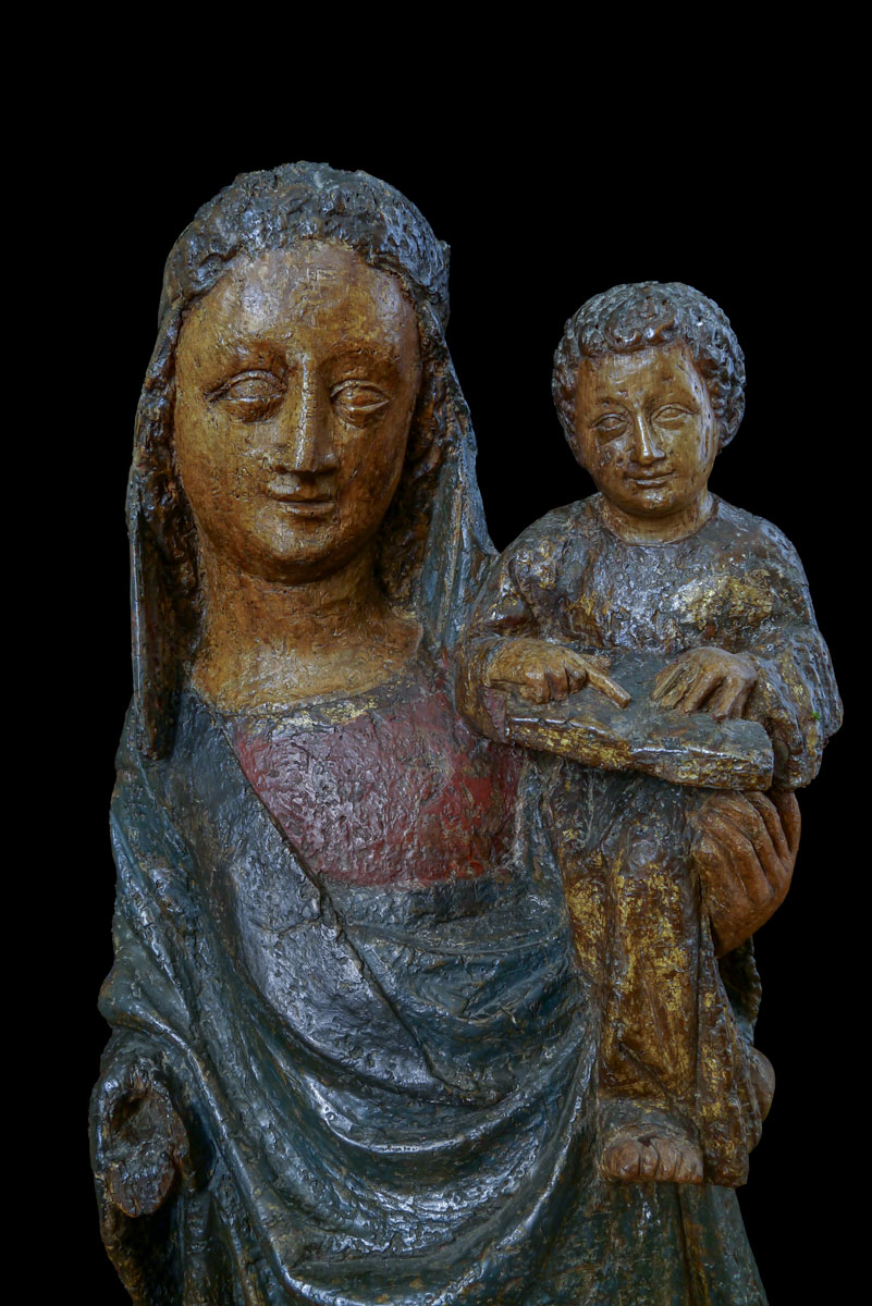 An Impressive Medieval Polychromed Figure of The Madonna Child