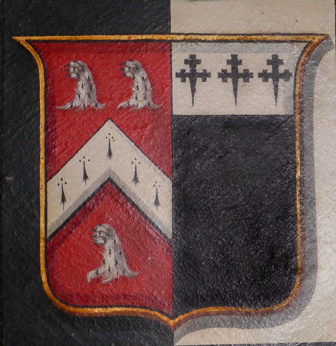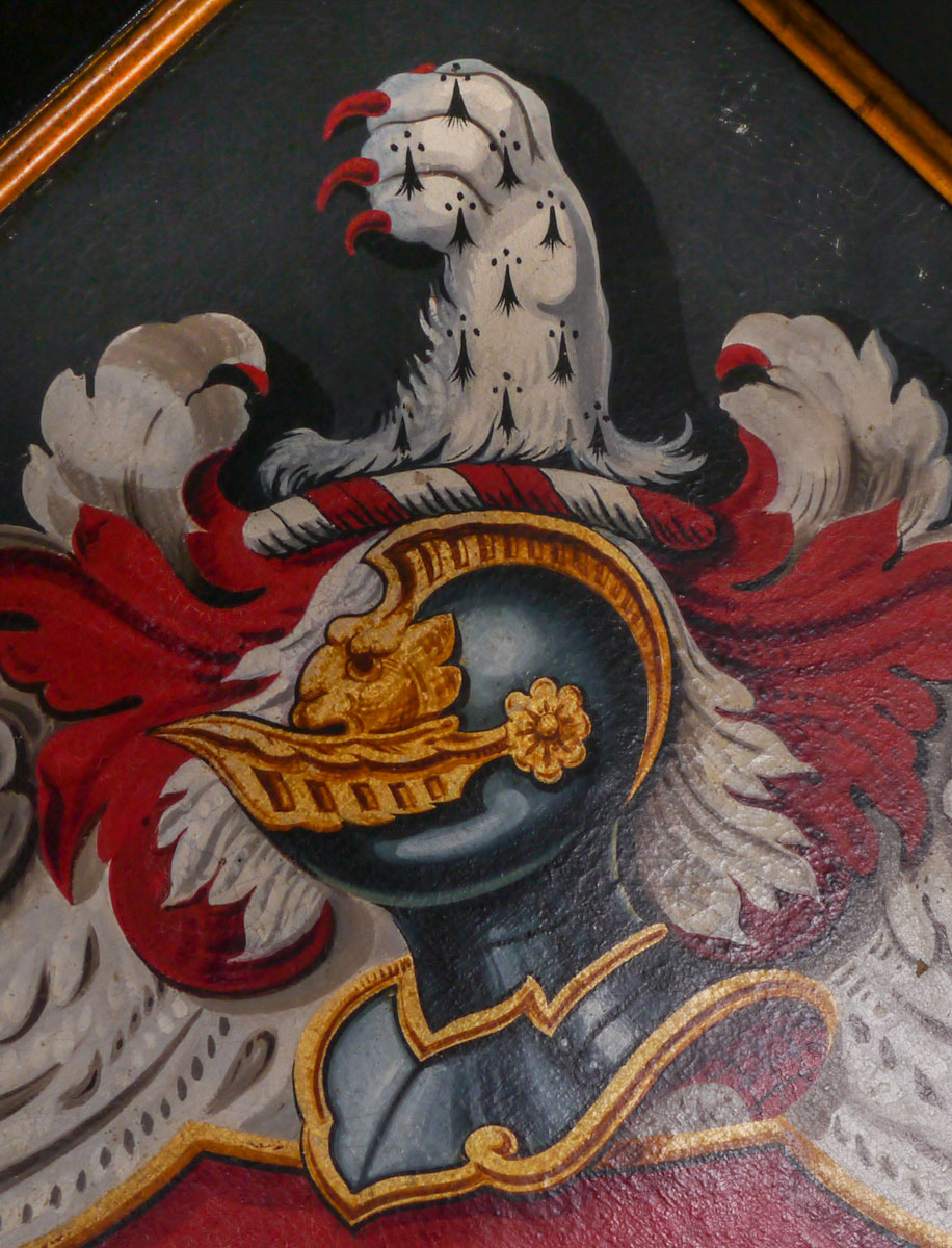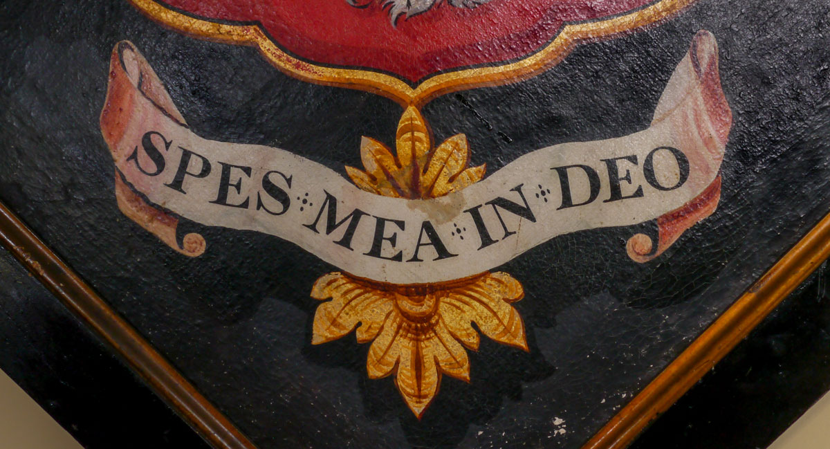 Hatchments were painted upon the death of a nobleman, normally the lord of a local manor, to announce the news to the locals. They were often painted by the local signwriter, and hung on the manor gates. After the funeral, the hatchment was taken to the church and hung therein. This hatchment is in excellent condition, retaining good strong colours. It hangs in the original frame, which is black with a gold lining to the inner moulding.