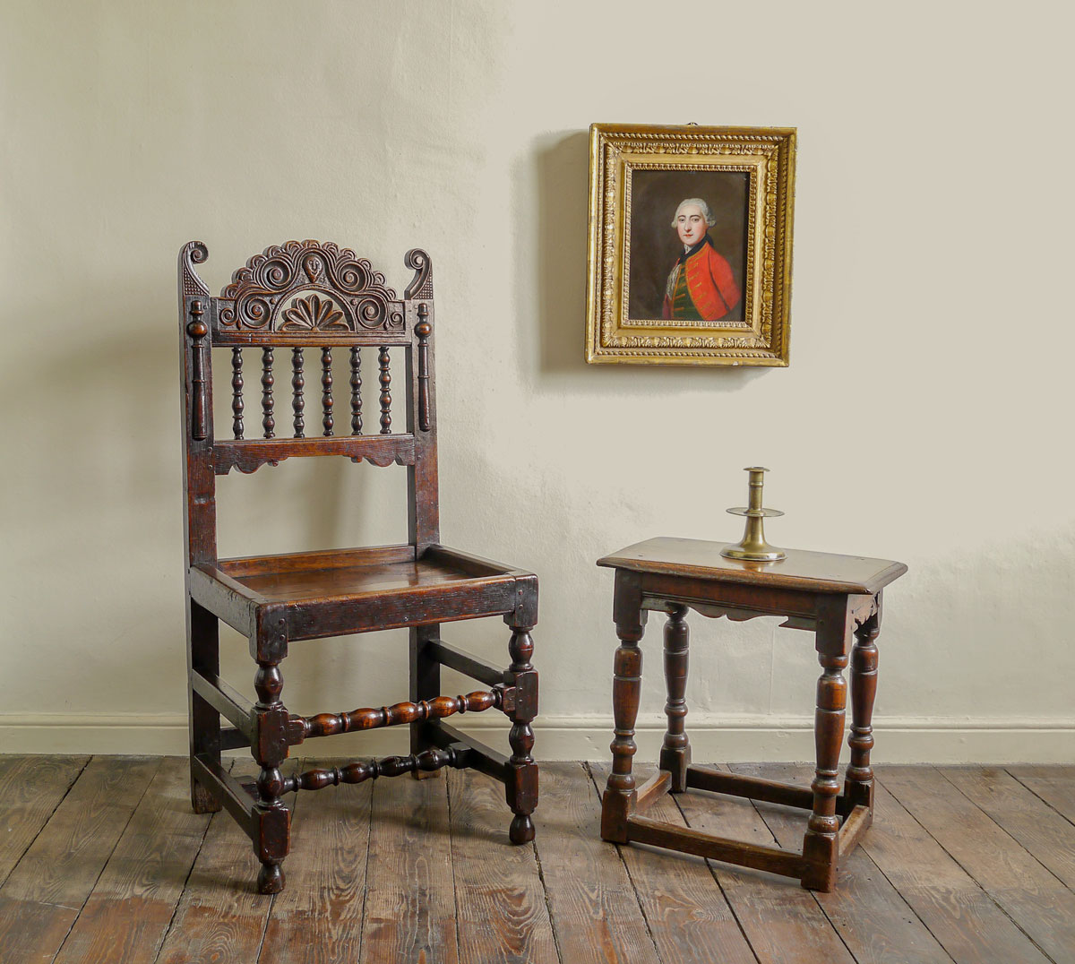 A Fine and Rare Charles II Oak Back Stool, or Single Chair