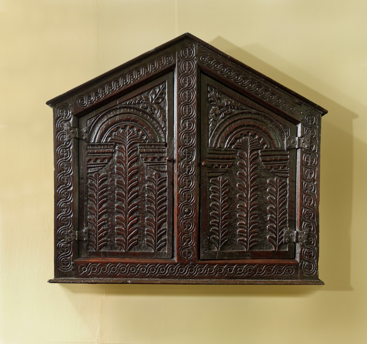 A Wonderful Small Charles I Oak Hanging Wall Cupboard