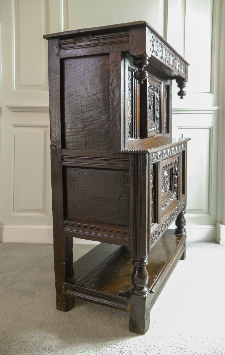 I rarely believe that pieces of early furniture are made for children, but this is the exception. This would have been an expensive piece of furniture when it was made ā the run-mouldings and rich, deep carving would suggest the cupboard was made for a much-loved child in a wealthy family.
