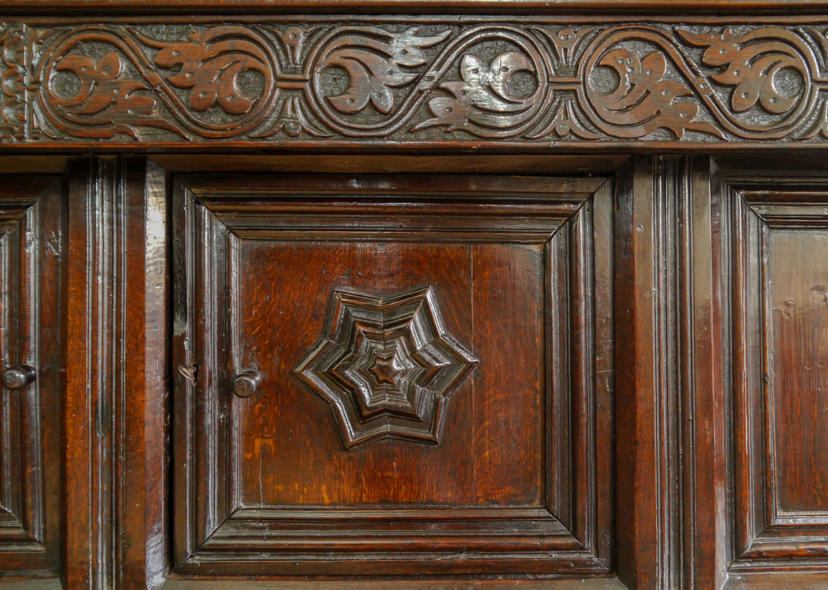 A Rare James II Oak Court Cupboard