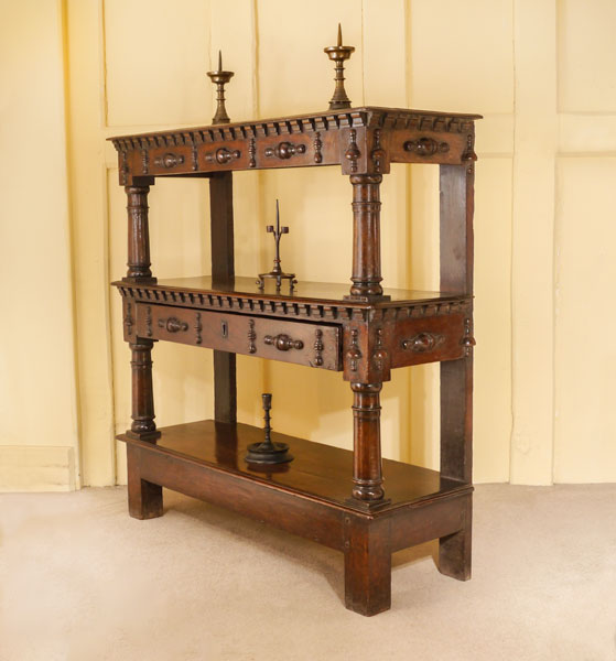 A Rare Small Charles I Oak Open Cup-Board or Buffet