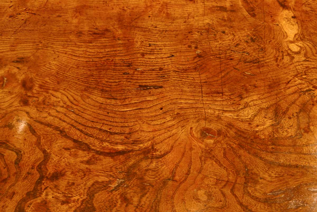 Having a wonderfully patinated top, made from a single board of well-figured elm, measuring an impressive 12 feet 10 inches long by 3 feet 2 inches wide, and almost three inches thick. Either end has a single cleat, which is mitred into the board and fixed with three wedged tenon joints.