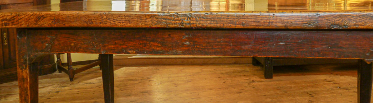 The use of elm would suggest this table was made in the West Country, where big elm trees were often found, indeed many early houses in Somerset and Dorset have elm joists and floorboards.