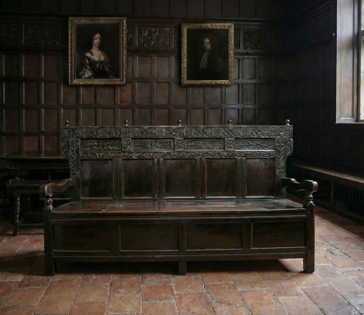 A Superb Early Charles II Oak Box Seat Settle