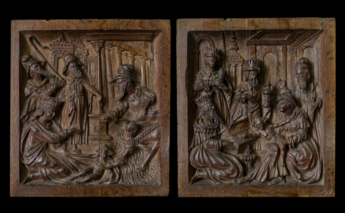 The panels have a lovely “dry” surface and were probably carved in Antwerp around 1580.