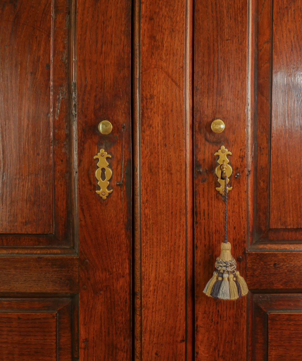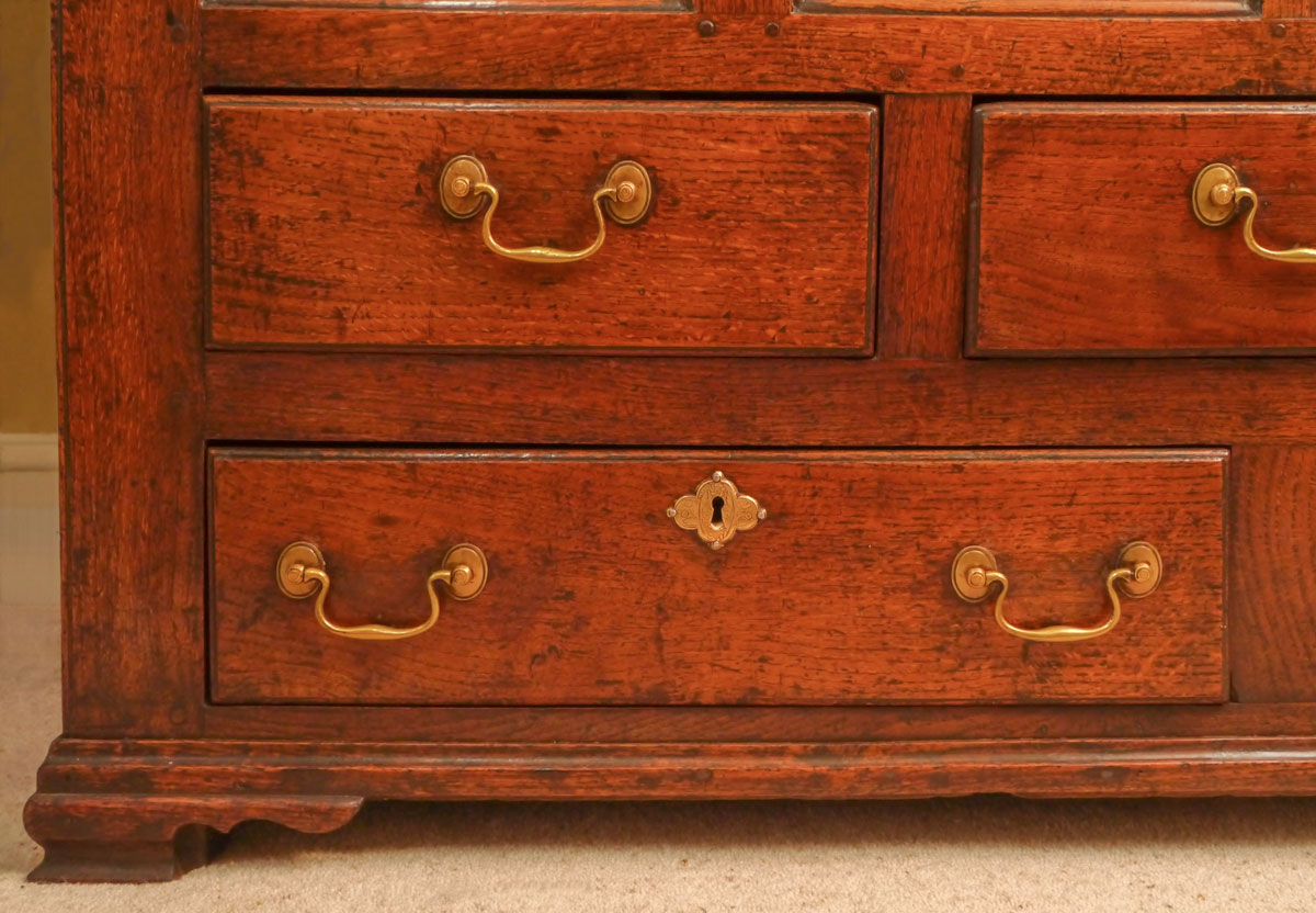 A beautiful piece of Welsh furniture, the upper doors with flattened fielded arch panels, concealing an ingenious secret locking device. The base, with its four arched panels above three small drawers, which again are locked by the same secret device, over two larger drawers which sit on a heavy base moulding with integral ogee bracket feet.