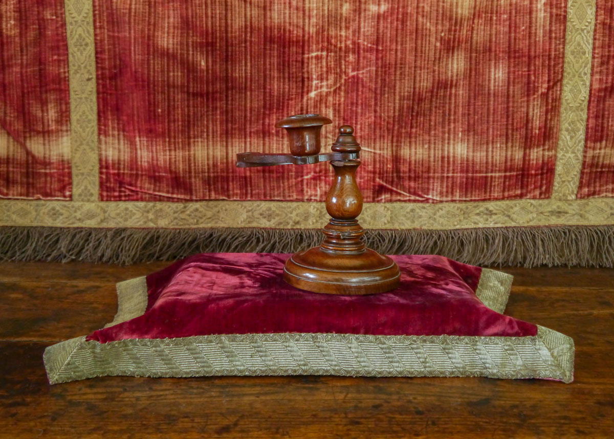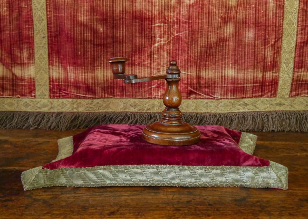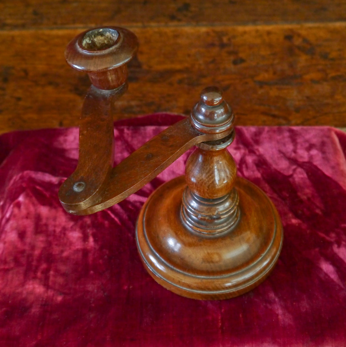 The turned base is weighted to counter-balance the candle when the arm is extended.