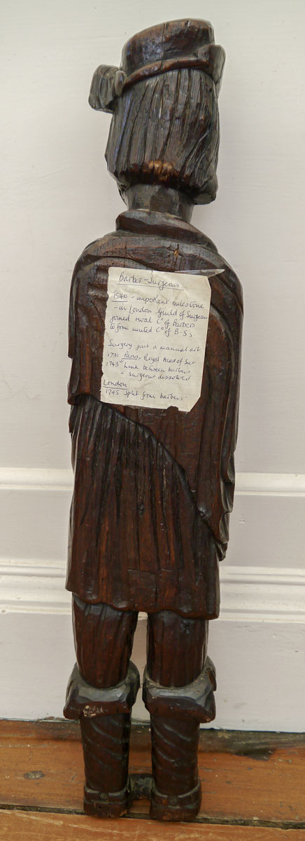 There are traces on the underside of the figure’s boots where a tenon has been, which could suggest this was an early form of “trade sign”, and would have been displayed at the surgeon’s place of business.