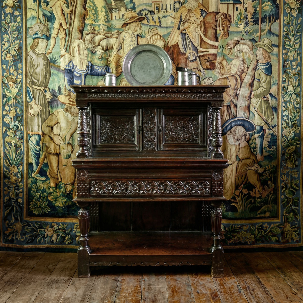 An Extremely Fine and Rare Elizabethan Oak Cupboard on Stand