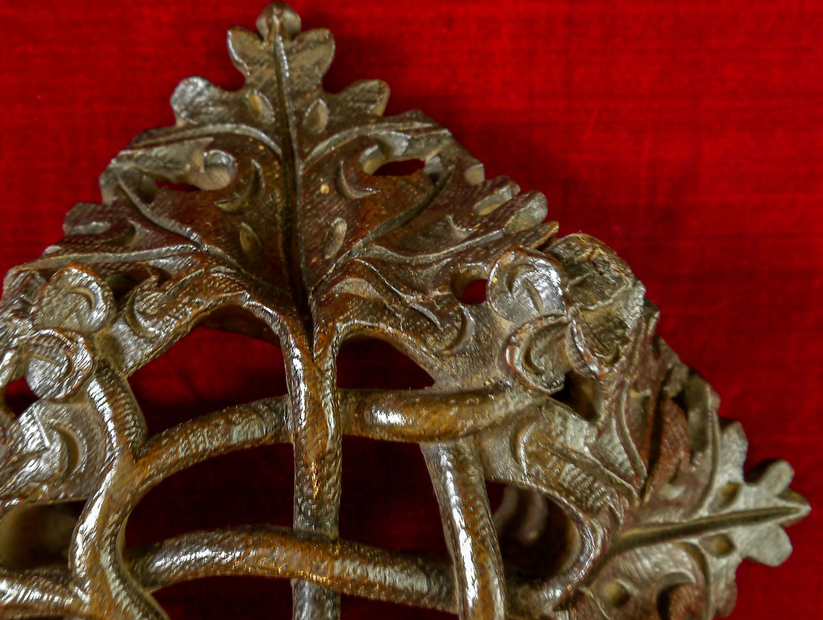 Beautifully carved, with open tracery depicting scrolling vines, flower heads and stylised oak leaves.