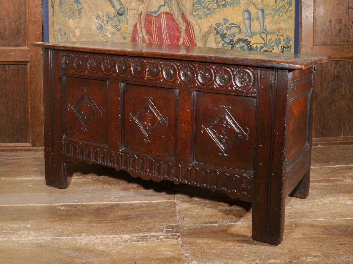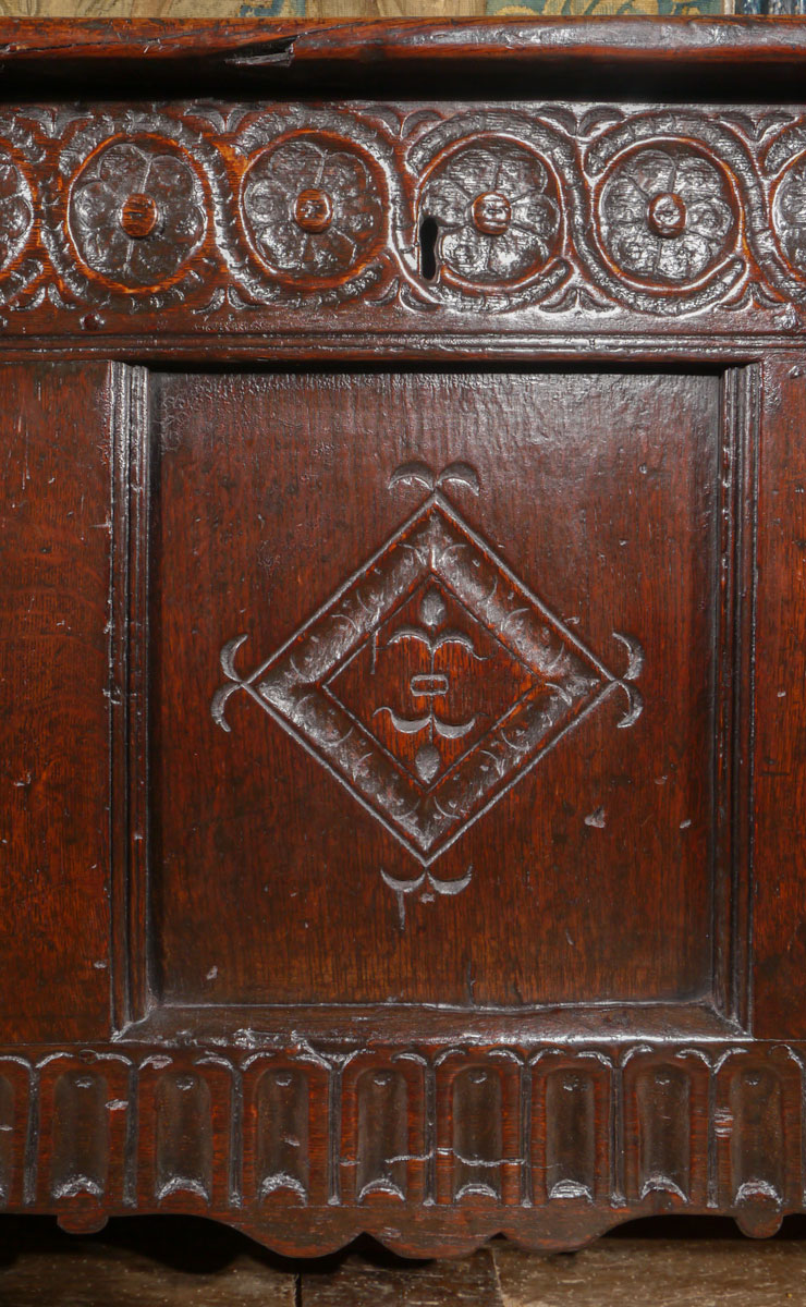 The chest is a lovely rich patinated oak and comes from the South West, circa 1630-40.