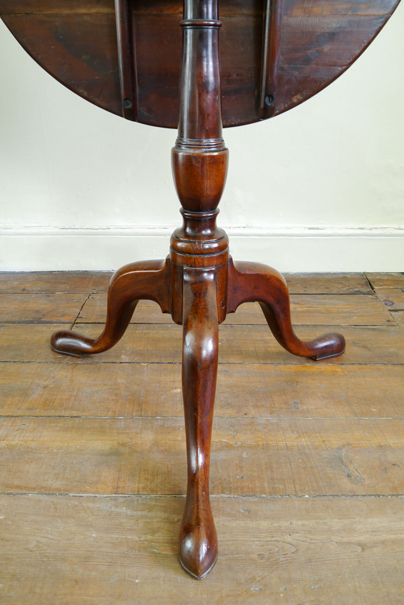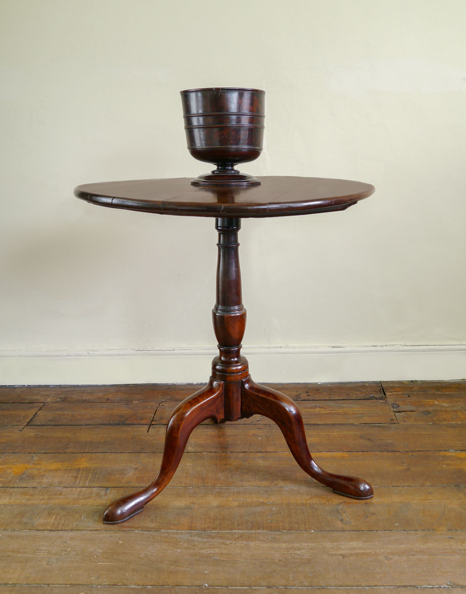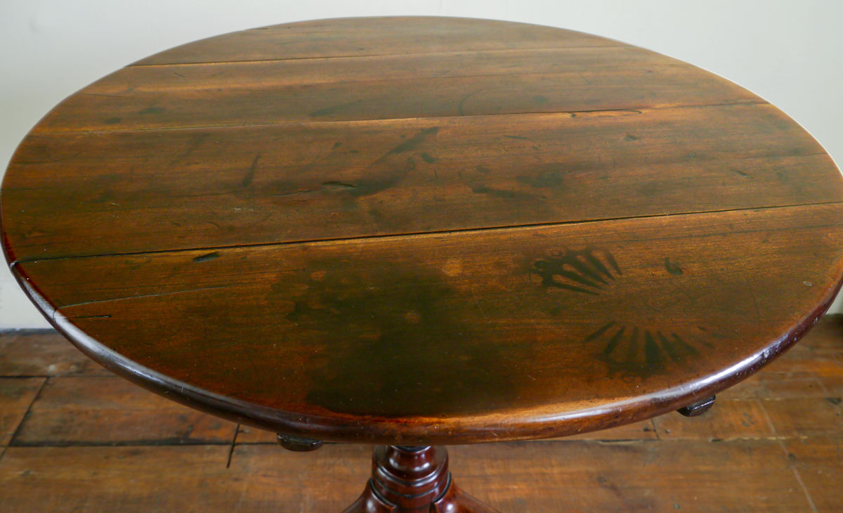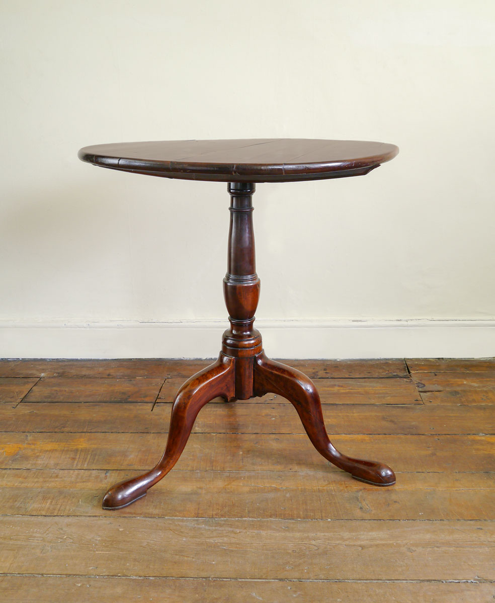 The pleasure of this wood is the tremendous depth of colour it naturally achieves. This table is a perfect example of cherry wood – a rich and extremely well-patinated surface. The boarded top, above a crisply turned column, supported on cabriole legs.
