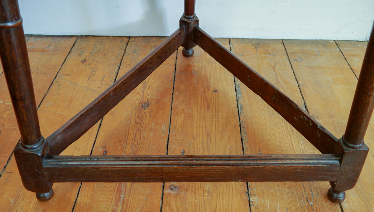 The three rails each have a narrow run-moulding along the bottom edge, and join the beautiful and elegantly turned legs, which have a slight downward taper, and finish in very pretty small feet, or toes. The bottom stretchers are again run-moulded, this time along the top edge.