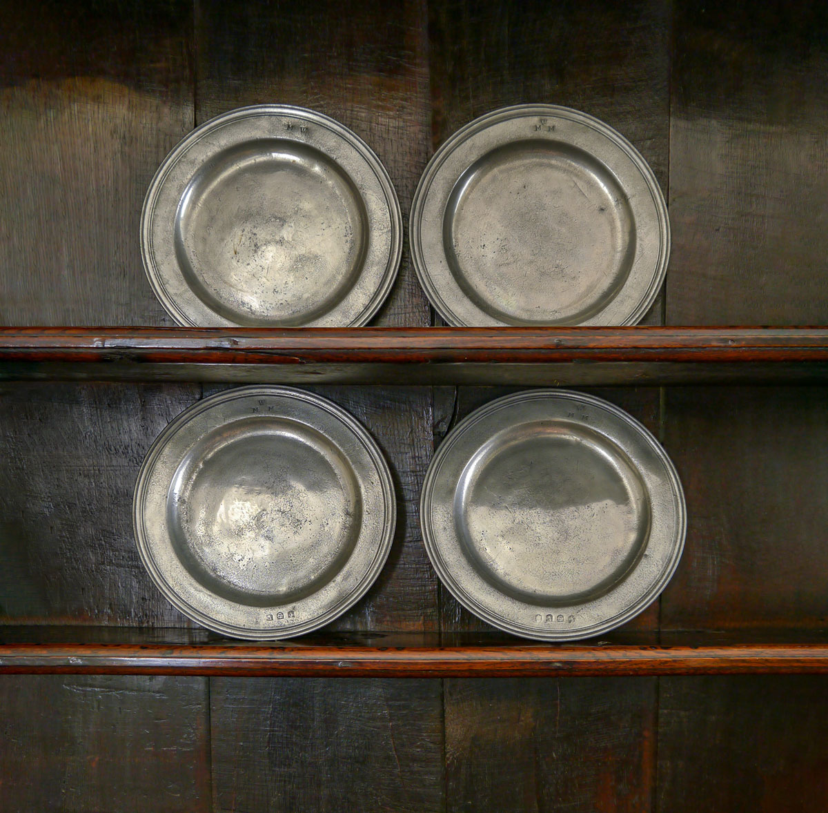 Home Stock A Fine Set of Four Queen Anne Period Pewter Plates