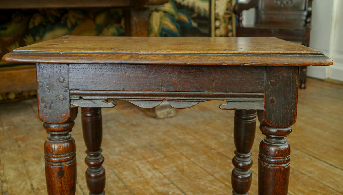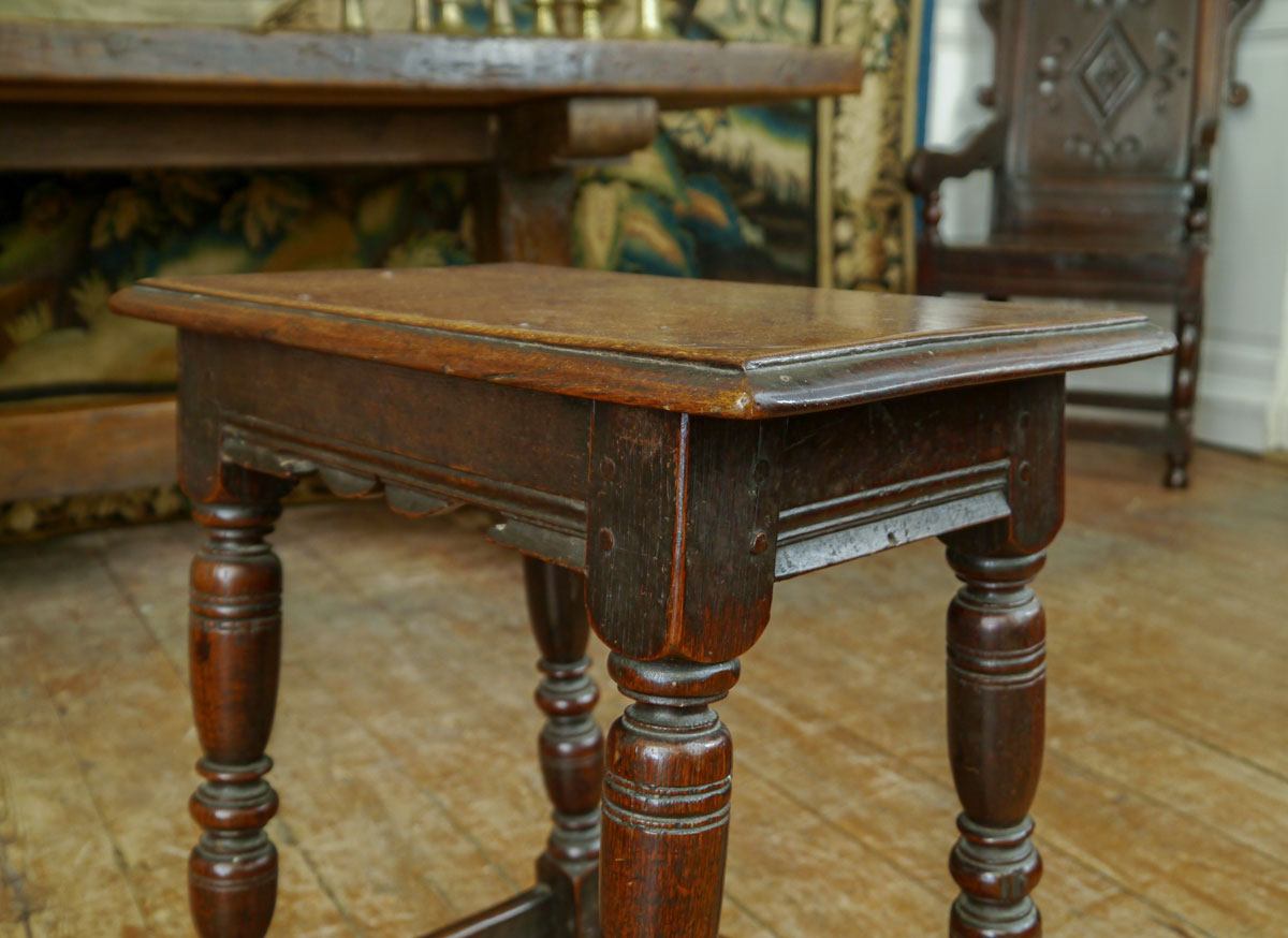 The beautifully figured thick boarded top, with a deep single moulding around the edge, secured to the moulded rails which have a shallow bicuspid shape to the bottom edge. The stout legs, with detailed and complicated turnings, joined by all round stretchers.