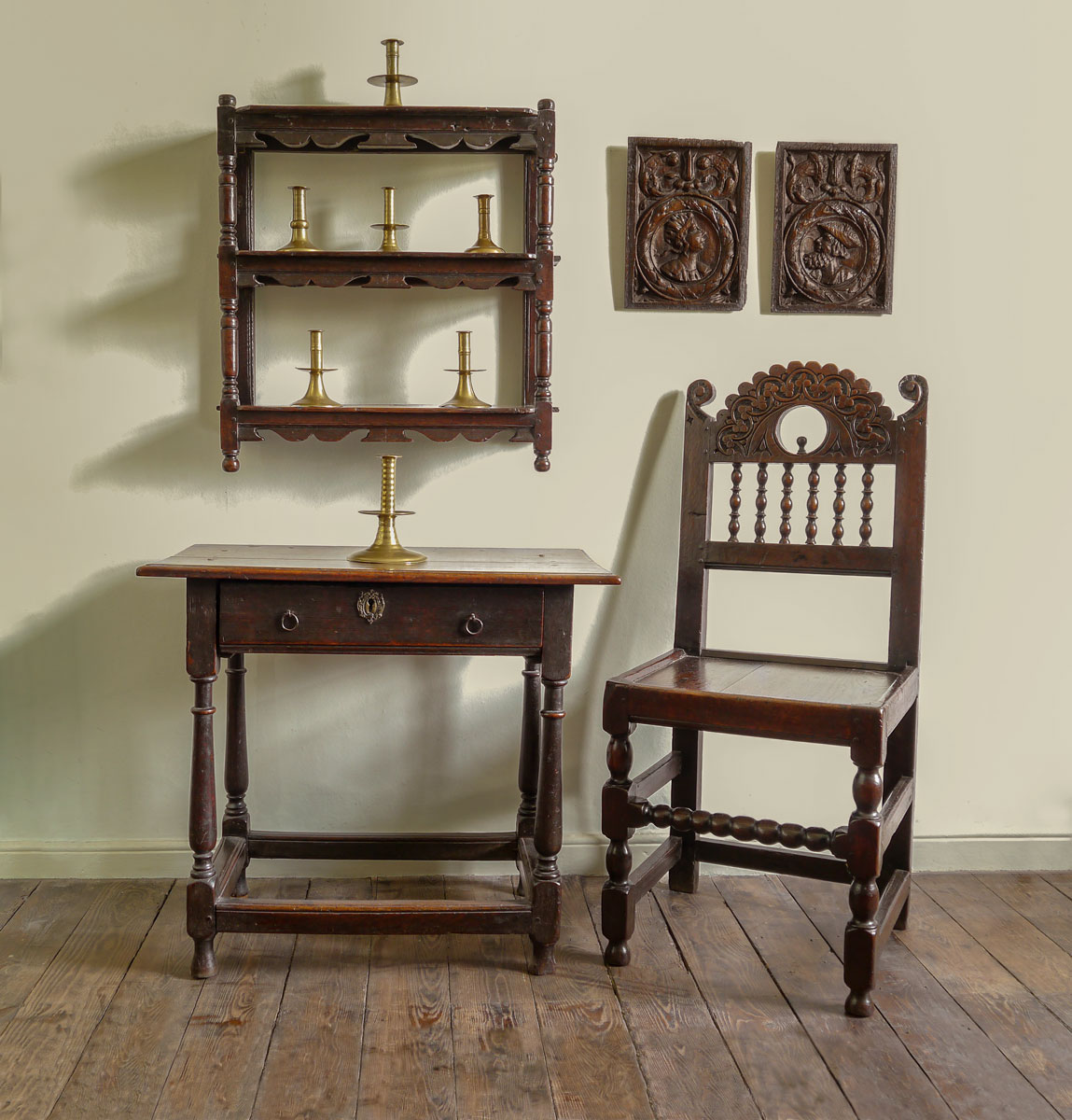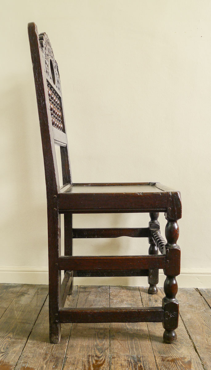 An Immensely Rare and Distinctive Charles II Oak Back Stool, or Single Chair