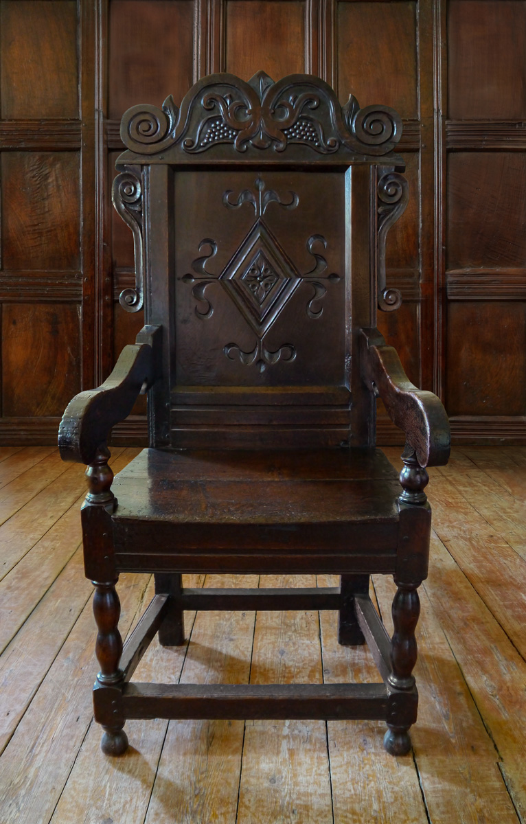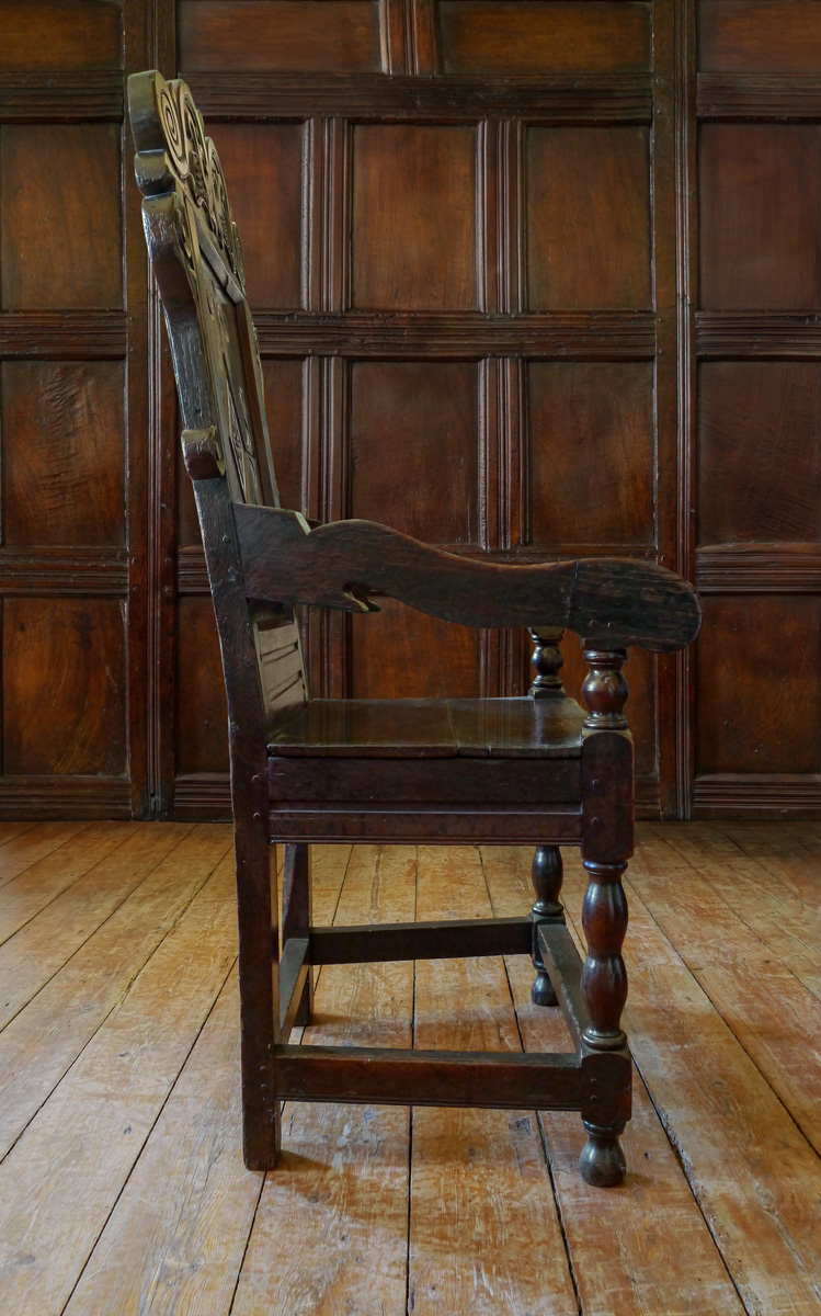 An Impressive Charles II Oak Panel Back Armchair