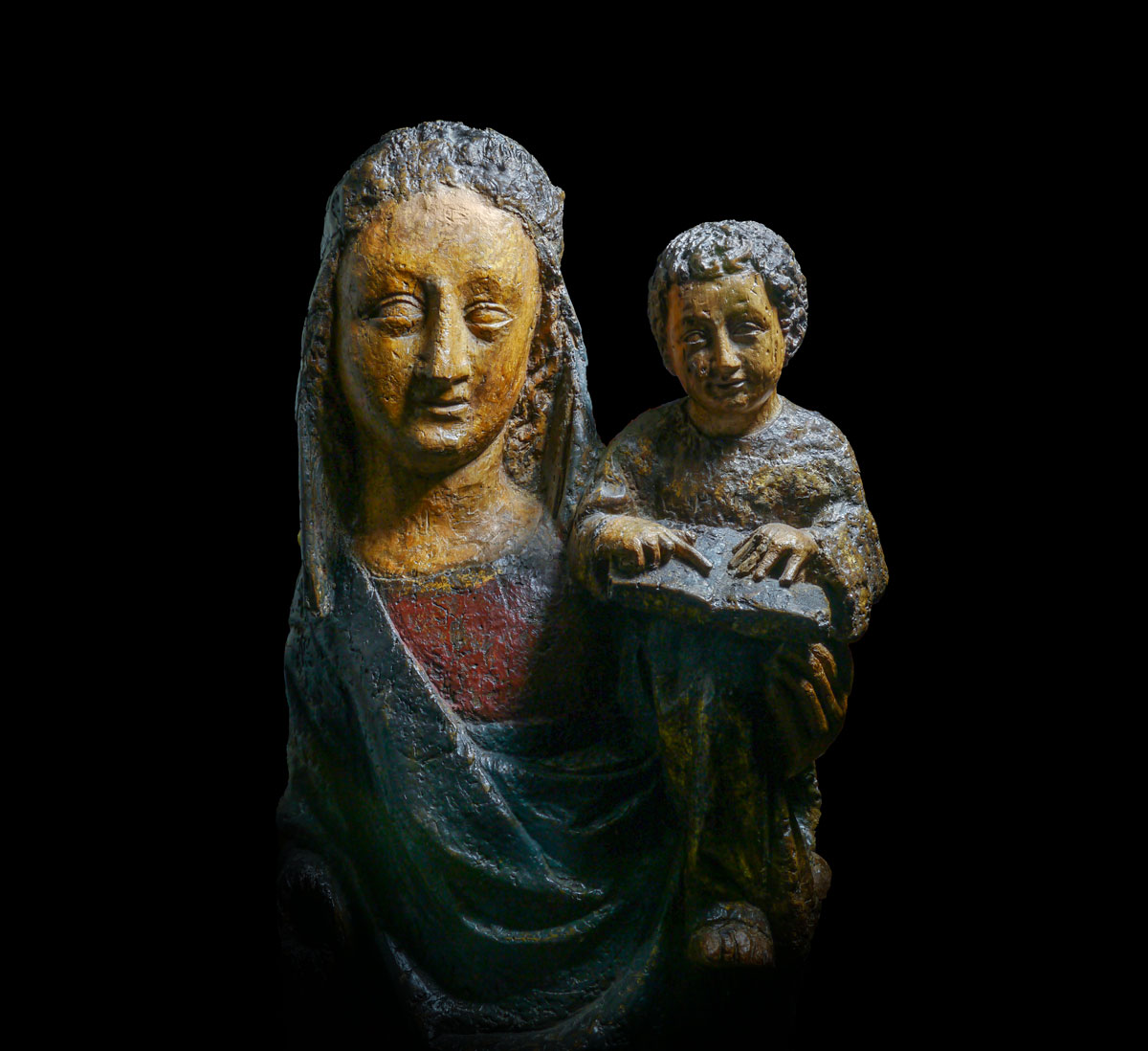 An Impressive Medieval Polychromed Figure of The Madonna Child