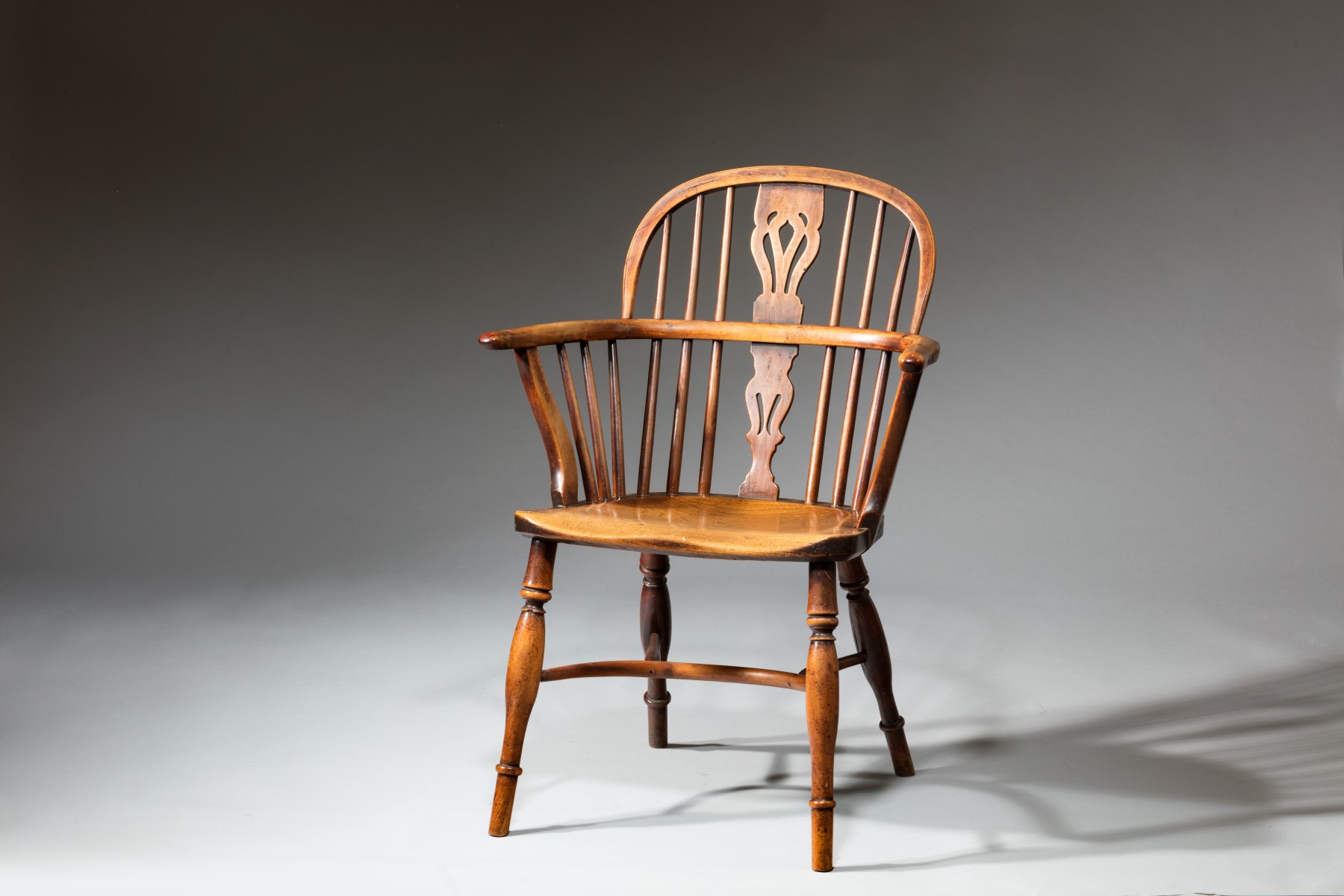 Low Back Yew Wood Windsor Armchair Stamped Nicholson of Rockley