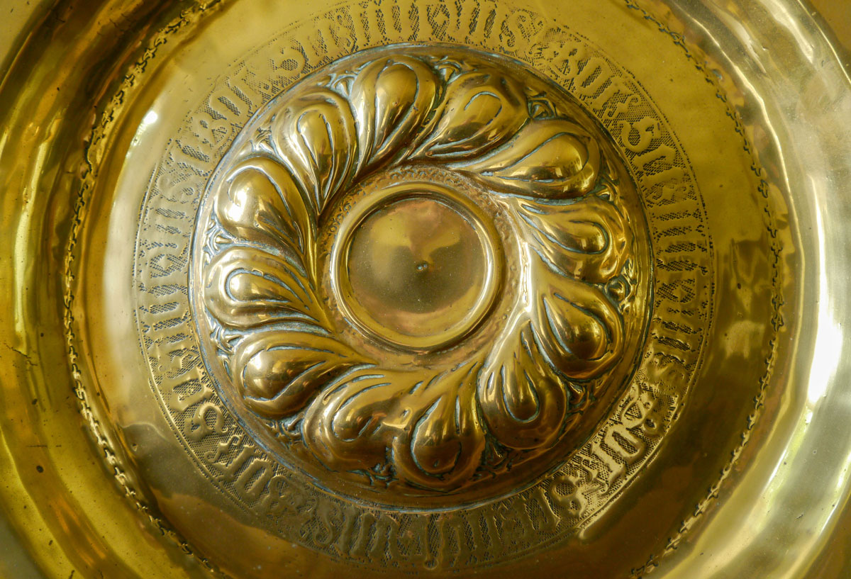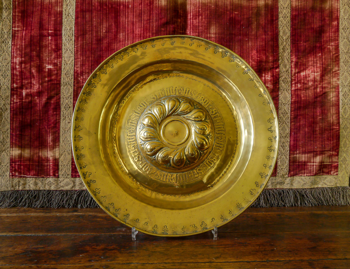 A Most Impressive 16th Century Large Brass Nuremberg Alms Dish