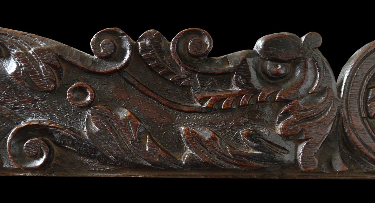 A Highly Impressive and Decorative Oak Cresting Rail from the Charles II Period