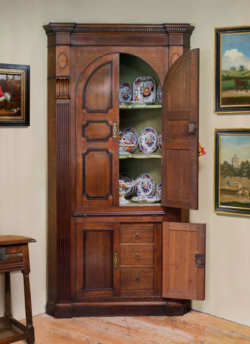 An Outstanding George III Architectural Oak Corner Cupboard