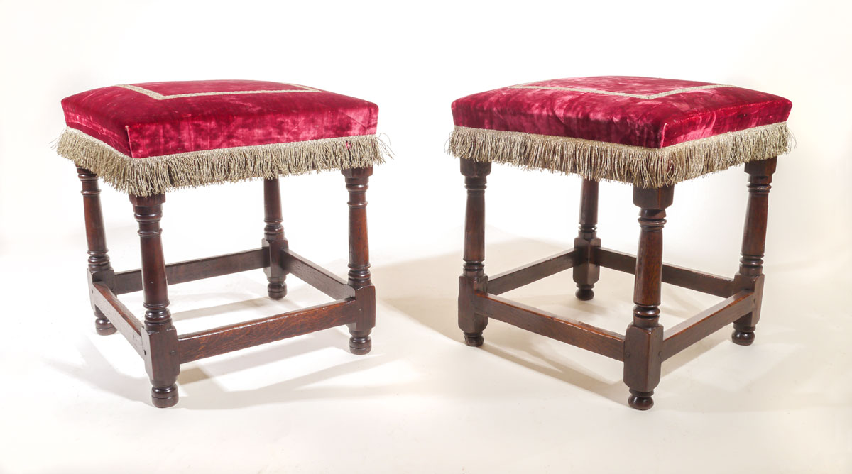 Two Very Similar Charles II Oak Upholstered Top Stools