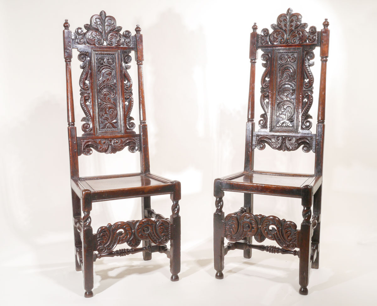 A Most Impressive Pair of Charles II Oak Side Chairs