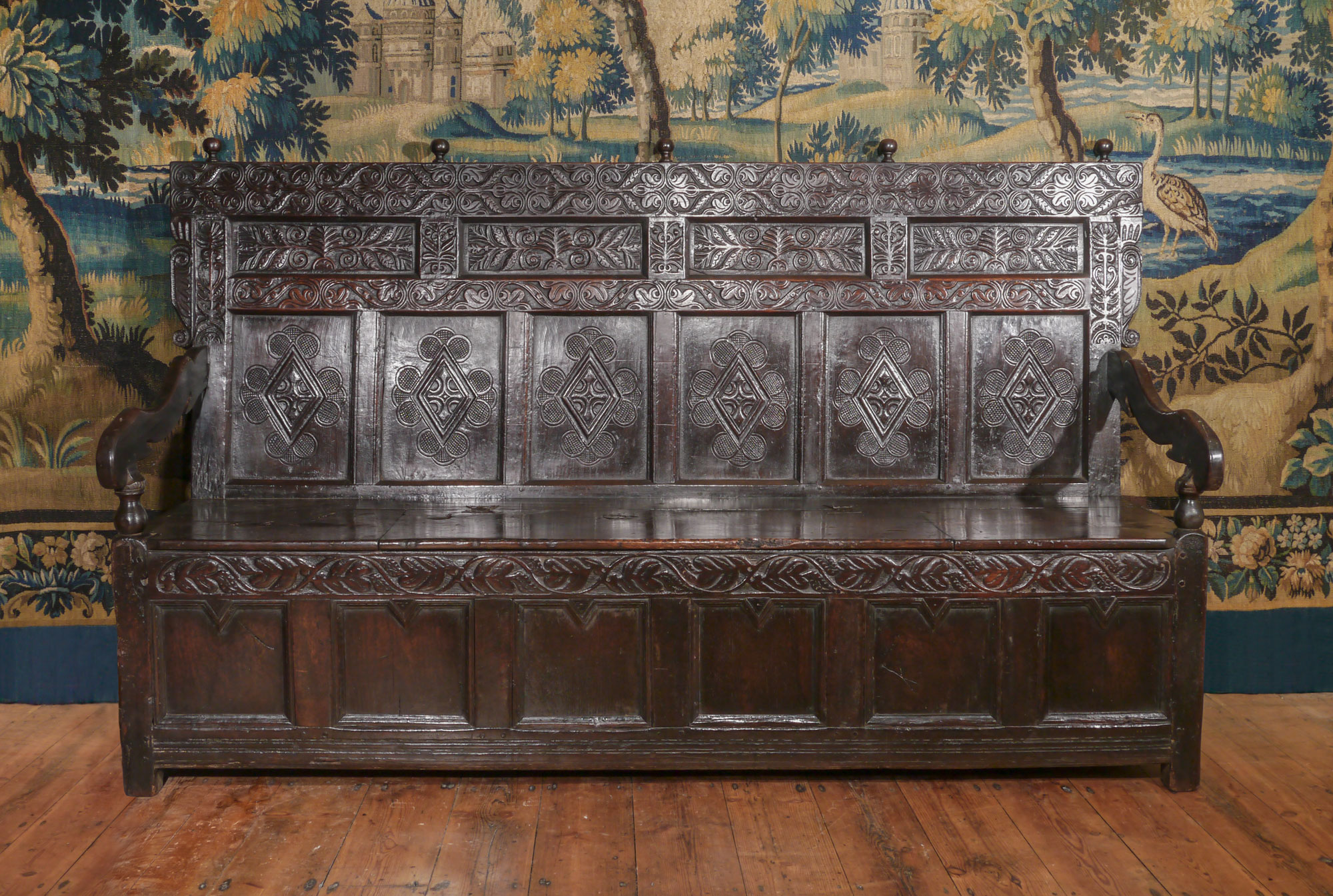 A Highly Impressive and Rare Charles II Oak Settle