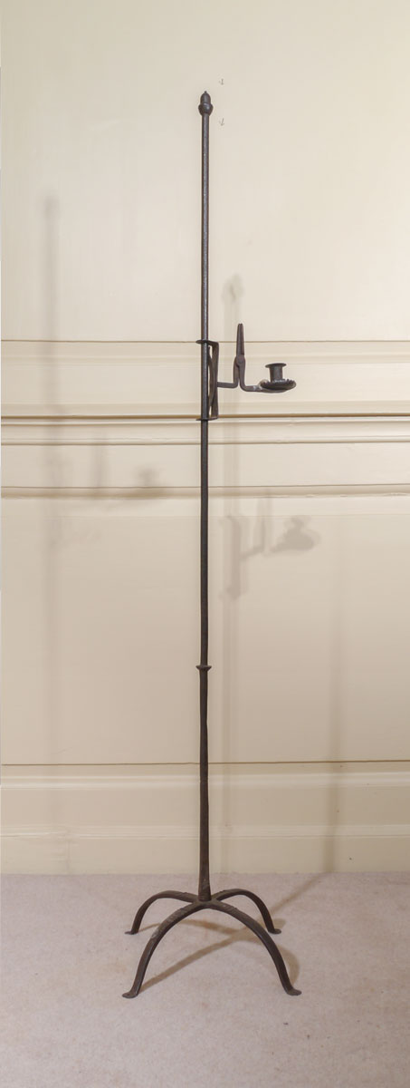 A Fine Mid-18th Century Wrought Iron Standing Rushnip and Candleholder