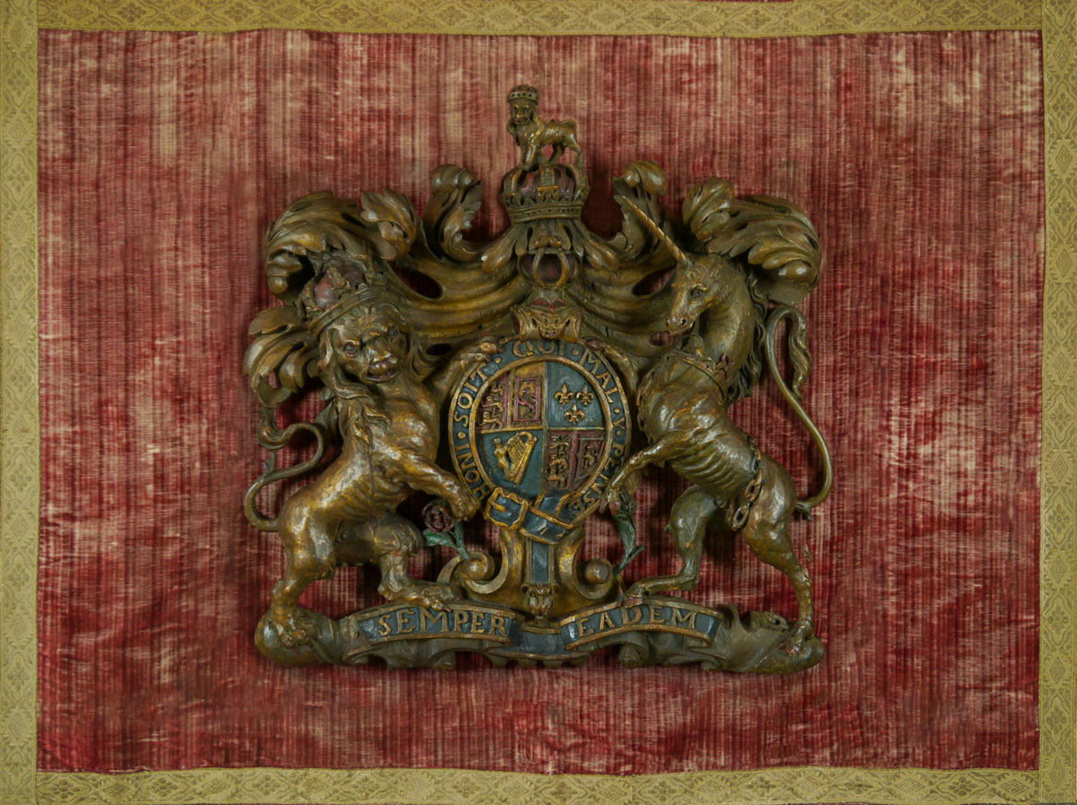 A Fine and Rare 17th Century English Carved and Polychrome Coat of Arms