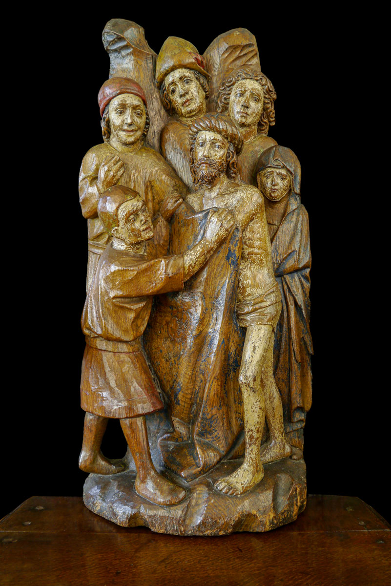 A Wonderful Medieval Carved Oak and Polychrome Group