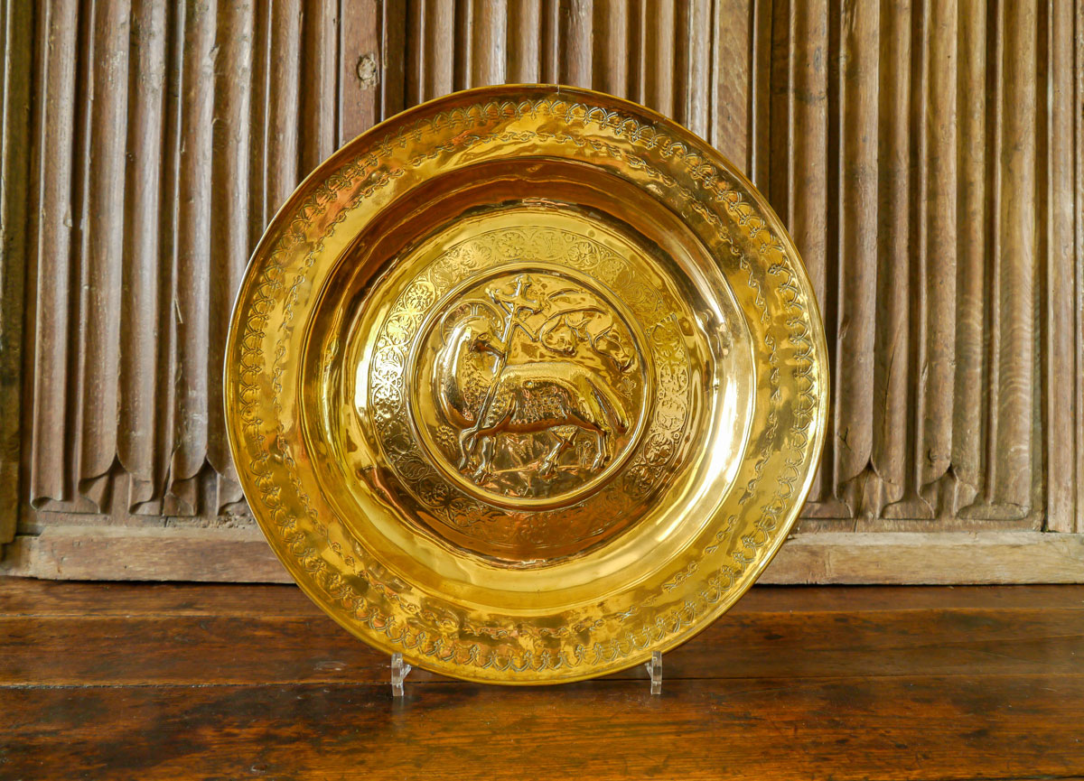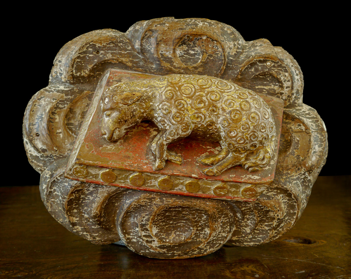 A Rare 15th Century Carved and Polychrome Ceiling Boss