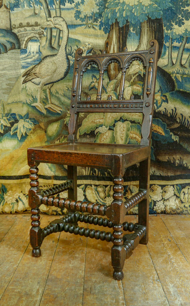 A Fine and Rare Charles II Oak Back Stool, or Single Chair