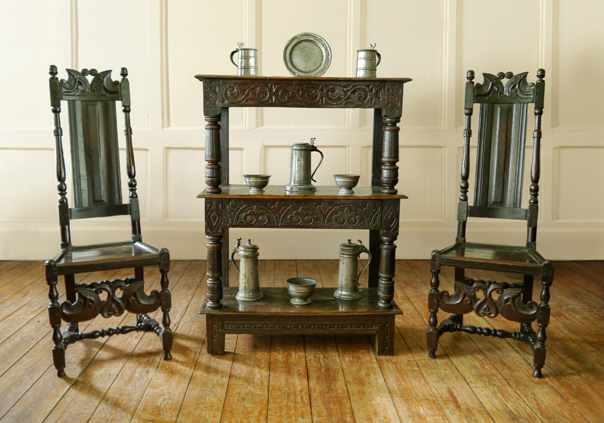 An Extremely Rare Small Charles I Oak Open Cupboard