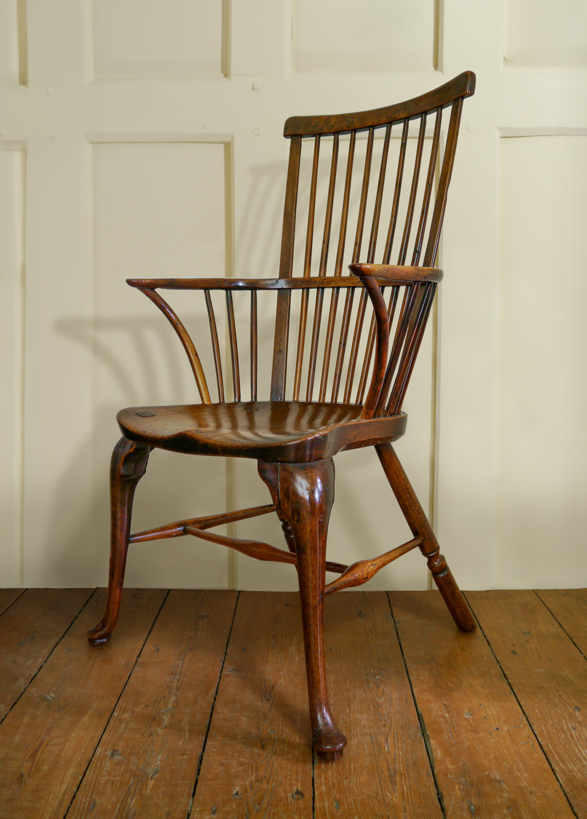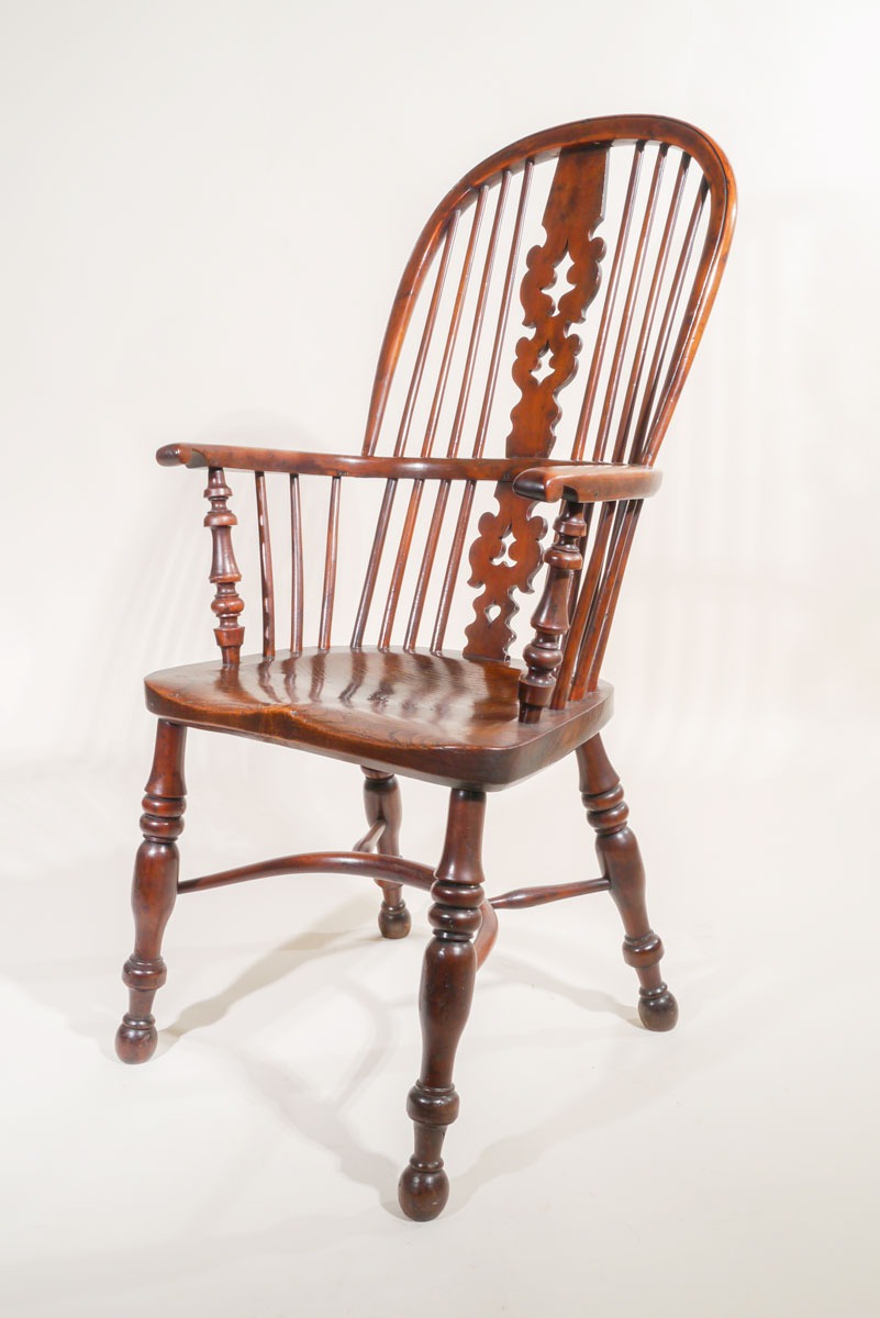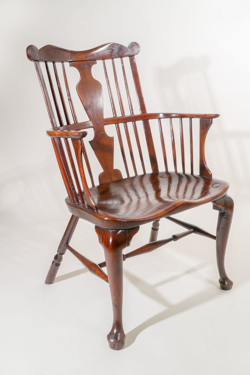 A Superb 18th Century Yew Wood Comb Back Windsor Armchair