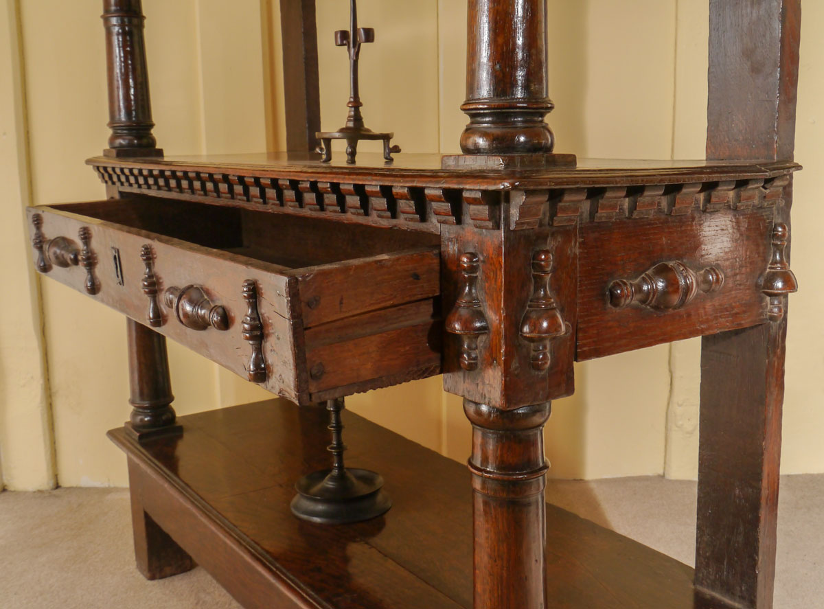 A Rare Small Charles I Oak Open Cup-Board or Buffet