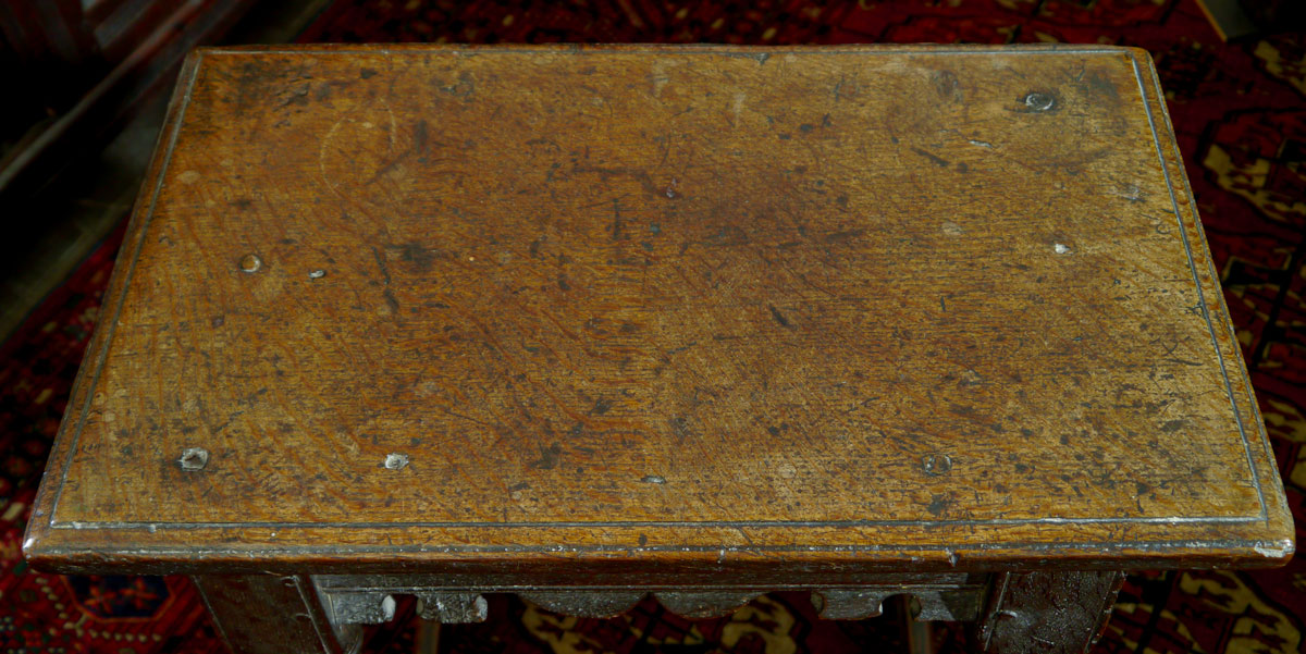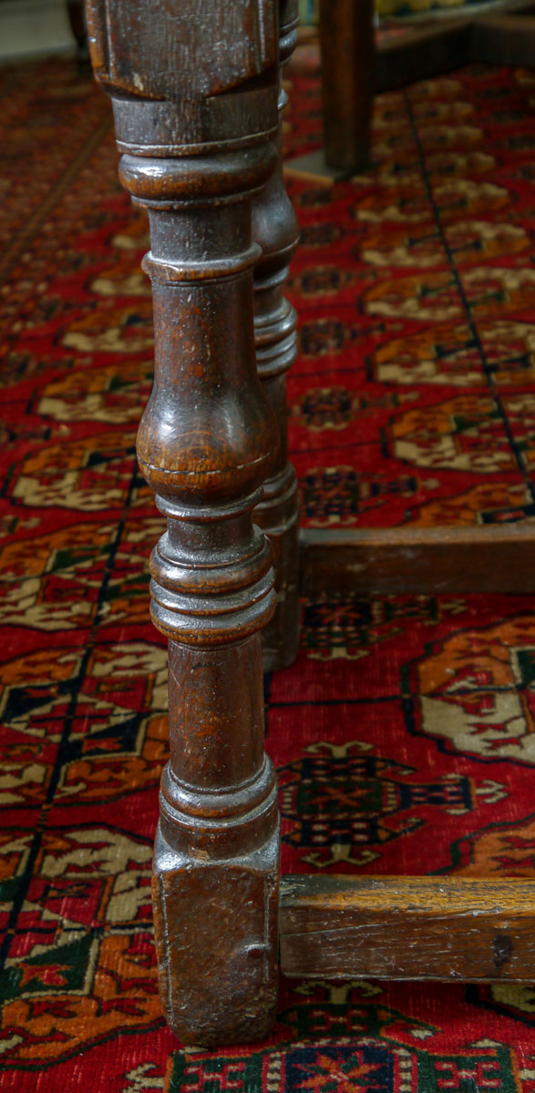 A fine and unusual stool, from a very skilled workshop. A similar period refectory table, probably from the same workshop, was sold in Bonhams Oak Sale, 28th September 2016, lot 242, illustrated for comparison.