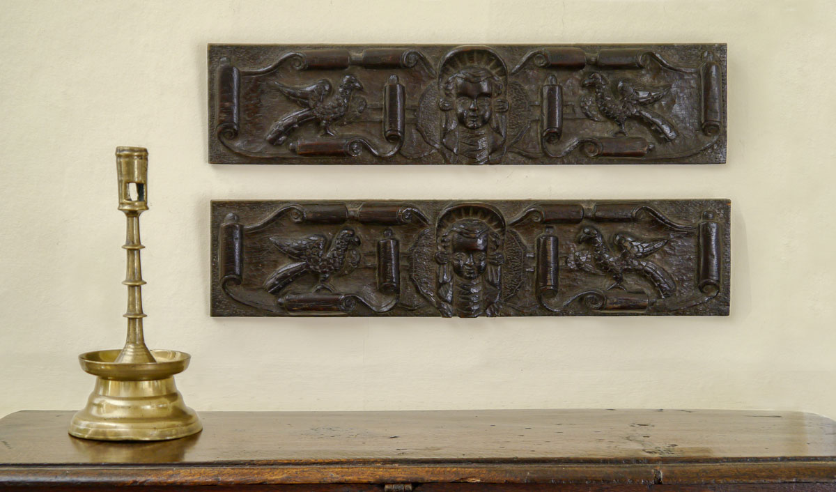 These panels would have formed the drawer fronts from an early piece of cabinet furniture.