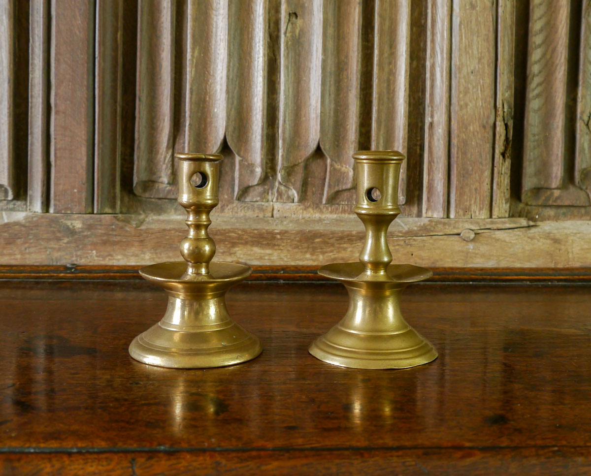 Home Stock Two Late 16th or Early 17th Century Bronze Candlesticks