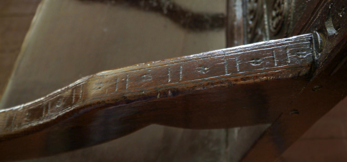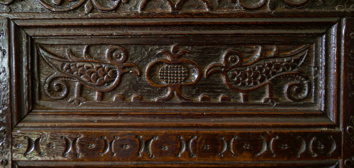 This example shows all the important characteristics – very fine linear carving, a good bold crest, this one displaying a pomegranate surrounded by scrolls and flowerheads.