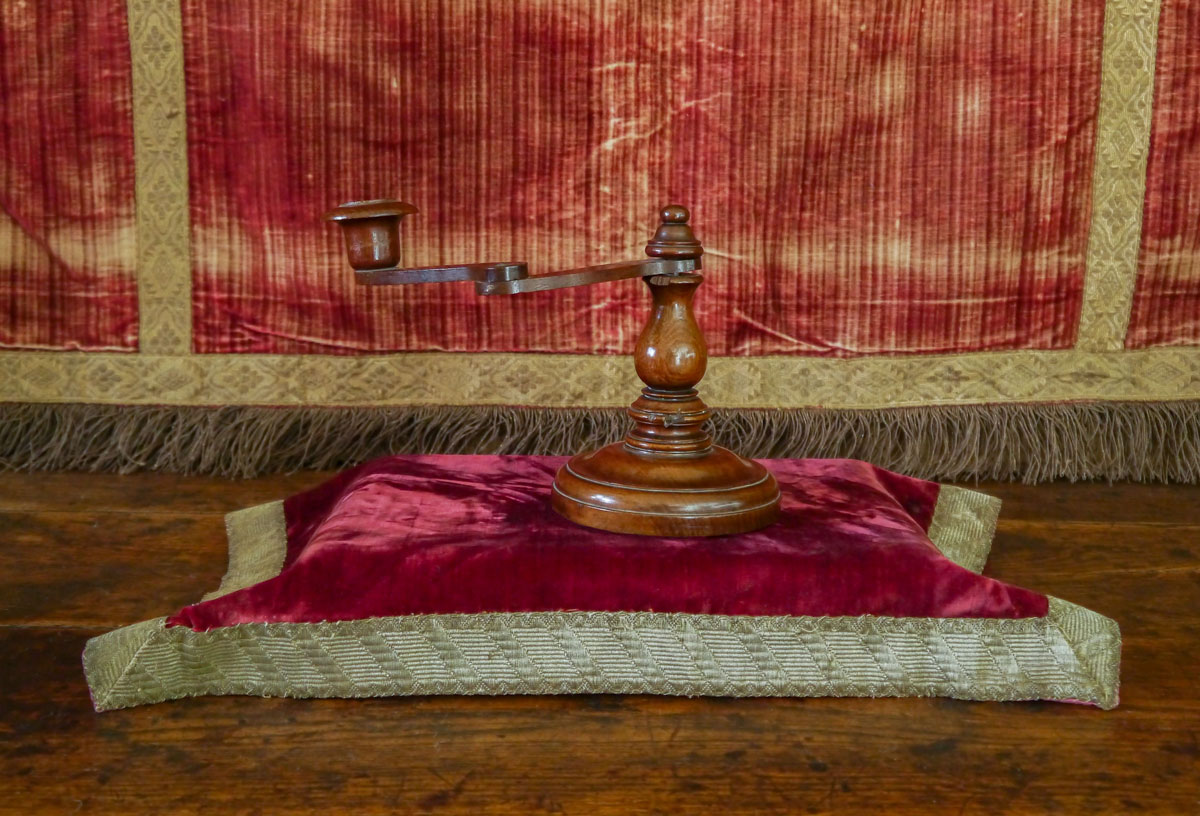 The turned base is weighted to counter-balance the candle when the arm is extended.